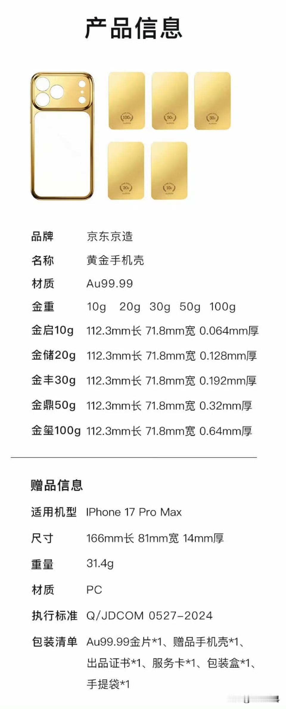 京东与苹果手机有合作吗? 京东要进一步彰显苹果的高端属性吗? 京东京造将为iPhone 17系列单独设计一款真金手机壳。 有多个版本可供选择。 京东京造如此行事,定是发现了商机。 毕竟用此包装, 能彰显手机的金融属性, 让其格调更高, 同时使手机真正具备了一定的收藏价值。非常不错的想法。手机