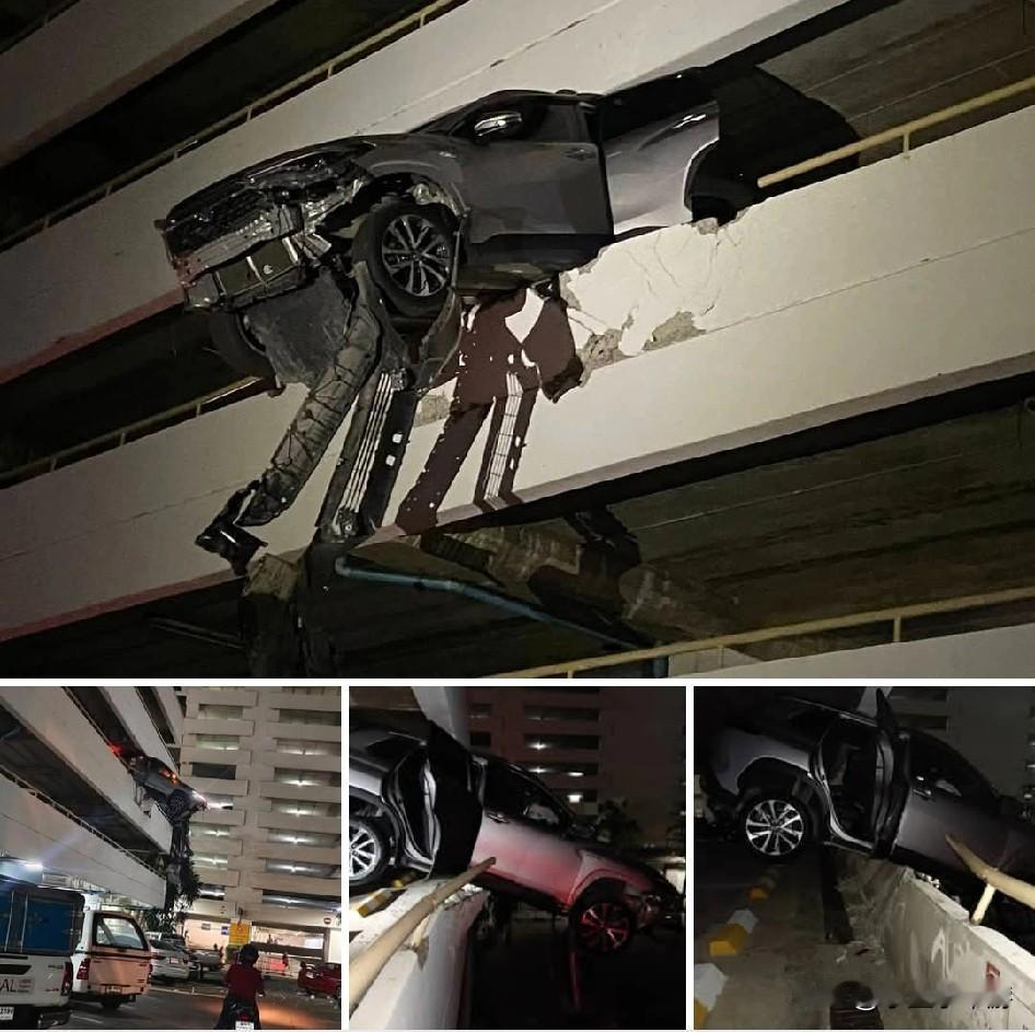 泰国曼谷一名司机误踩油门,导致轿车撞破停车场混凝土围墙,车头悬空,险些坠落。所幸司机和乘客事后仅受轻伤,逃过一劫。