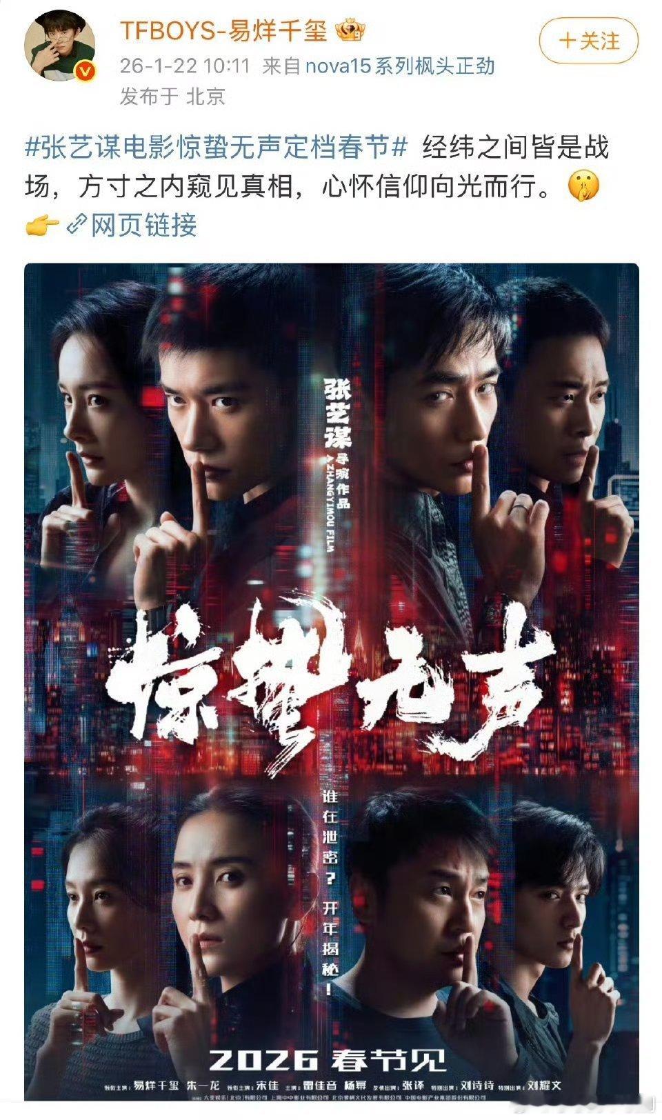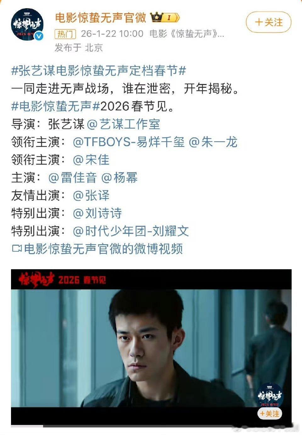 易烊千玺易烊千玺刘耀文师兄弟携手破案《惊蛰无声》预告太炸了!易烊千玺刘耀文师兄弟合体携手破案,一代二代同框飙戏,这阵容直接拉满期待值,坐等剧集官宣更多消息!