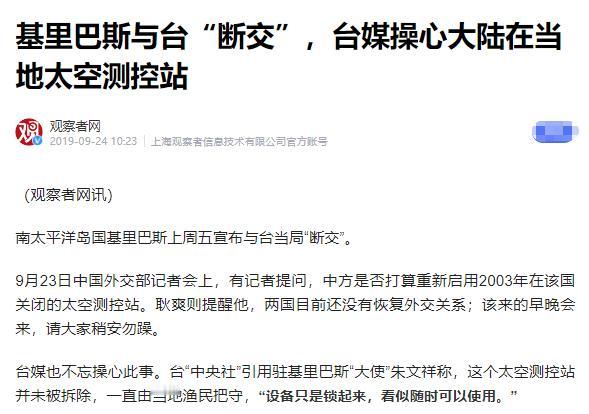 1997年,中国在基里巴斯租了一块地,建了个卫星测控站,用来支持航天任务。结果没想到,2003年,基里巴斯刚上台的华人总统汤安诺一拍桌子就说:“这块地不租给中国了!”这个决定一下子让国际社会惊掉了下巴:难道这么重要的测控站,就这么说关就关? 答案没那么简单。这个测控站不是普通租地项目,而是中基两国1996年正式签署协定后的合作成果,1997年建成投用刚好赶上中国航天事业的关键发展期。 基里巴斯的地理位置太特殊。这个由三十多个环礁组成的太平洋岛国,刚好落在中国航天器进入太空的关键轨道段上。测控站能精准捕捉卫星信号,为当时的载人航天、卫星发射任务提供关键数据支撑。中国为这个站点投入了不少精力,建站设备和建材都享受基里巴斯的关税减免,当地政府还负责保障水电供应和人员安全,双方原本约定合作期限长达十五年。 汤安诺的上台改变了这一切。这位华裔总统的父亲是中国移民,自身接受过新西兰和英国的高等教育,2003年7月以微弱优势当选基里巴斯总统。他刚上任就把矛头对准中基航天合作,四个月后就宣布与台湾地区建立所谓“外交关系”。 叫停测控站租赁只是断交的配套动作。根据中基双方签署的协定,任何一方中断外交关系,合作协定都会自动终止。中国随即启动撤站程序,将站内设备、技术资料全部撤回,结束了这段六年的合作。国际社会的震惊,本质是对这种仓促翻脸的不解,更疑惑华裔总统为何会做出不利于中基合作的决策。 核心驱动力是台湾当局的金钱外交。台湾为拉拢基里巴斯,在汤安诺竞选期间就提供了巨额资金支持,累计支付约一百万美元现金资助其政党竞选。“建交”承诺更是加码,不仅允诺大额援助,还秘赠汤安诺所在政党120万澳元,给汤安诺本人10万美元,甚至为他支付诉讼费用。对经济极度落后的基里巴斯来说,这些资金诱惑难以抗拒。 基里巴斯的小国生存困境也推波助澜。这个国家陆地面积仅811平方公里,经济完全依赖渔业和外部援助,气候变化带来的海平面上升问题还让国家面临生存危机。汤安诺政府上台后,把外部援助当作维持统治的关键,台湾的金钱承诺刚好击中其软肋。他甚至直言,金钱是基里巴斯与台湾建立所谓“外交关系”的决定性因素。 美国的隐性施压也不容忽视。当时美国一直对中国在太平洋的航天布局心存警惕,多次向基里巴斯渲染所谓“安全威胁”,声称中国测控站用于监视美国在马绍尔群岛的导弹靶场。虽然基里巴斯前政府顶住了压力,但汤安诺上台后,为换取西方支持,刻意迎合这种论调,将测控站合作污名化。 这一决策并未给基里巴斯带来长远好处。台湾承诺的援助很多未能兑现,基里巴斯失去了中国这个稳定合作伙伴。中国此前通过合作给当地带来就业机会,还帮助改善基础设施,撤站后这些利好全部中断。而中国航天的损失被控制在有限范围。 中国航天从一开始就奉行独立自主理念,早已构建地面、海上、中继卫星联动的测控体系。基里巴斯测控站关闭后,“远望”系列测控船队及时补位,通过接力测控将影响降到最低。后续神舟系列任务的顺利推进,也印证了中国航天不依赖单一海外站点的底气。 汤安诺政府的短视决策,最终让基里巴斯付出代价。在与中国断交的十六年间,基里巴斯经济发展停滞,气候变化应对也缺乏有力支持。汤安诺任期内虽因气候议题获得国际荣誉,却没能解决国内民生难题,其政府的腐败争议也从未停止。 历史最终走向理性回归。2019年9月,基里巴斯与中国恢复外交关系,承认世界上只有一个中国,台湾是中国领土不可分割的一部分。两国恢复合作后,中国迅速向基里巴斯提供抗疫援助、经济支持,帮助其应对气候危机,合作水平远超当年。 回望这场风波,本质是小国在大国博弈和金钱诱惑下的一次错误选择。汤安诺的决策无关族群认同,只关乎短期政治利益算计。而中国的应对,既坚守一个中国原则,又展现出航天实力的韧性和大国气度。 太平洋岛国的地缘价值始终存在,但唯有基于相互尊重、互利共赢的合作才能长久。基里巴斯的经历也给其他小国提了醒,依附外部势力的金钱援助终是镜花水月,与中国这样的负责任大国合作,才能获得稳定发展机遇。中国航天的稳步前行,更不会因个别海外站点的变动而停滞,独立自主的发展道路,才是最可靠的底气。