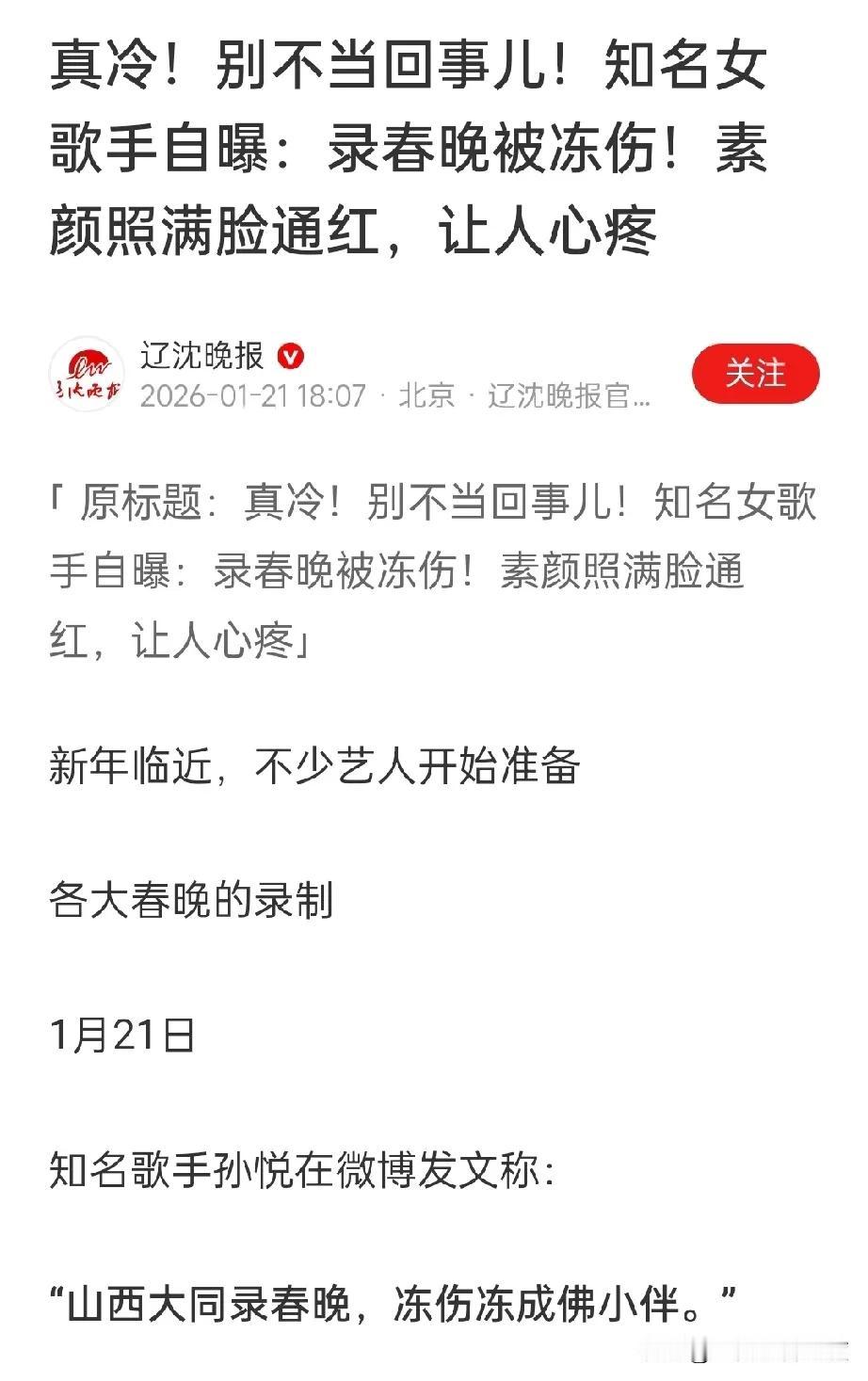 大同的寒冷可不是一天两天了,怕冷就别来呀,毕竟这是你自己的选择,真没必要如此矫情。 要是公益演出,一分报酬都不拿,大家都会理解你分享生活感受。 这几天天寒地冻,环卫工大爷大妈每天凌晨四五点就开始清扫大街;骑着电动车上下班的哥哥姐姐们,哪个不是在寒冷中坚持着。难道他们不知道冷吗?他们也冷,他们只是不说而已,可他们的身体可没你那么娇弱。 所以各位明星,千万别在网上晒自己的小委屈、小困难,不然很容易招来非议。 山西大同 山西大同 大同防寒 大同雪景 大同气候 大同宣传照