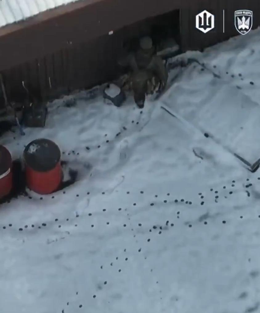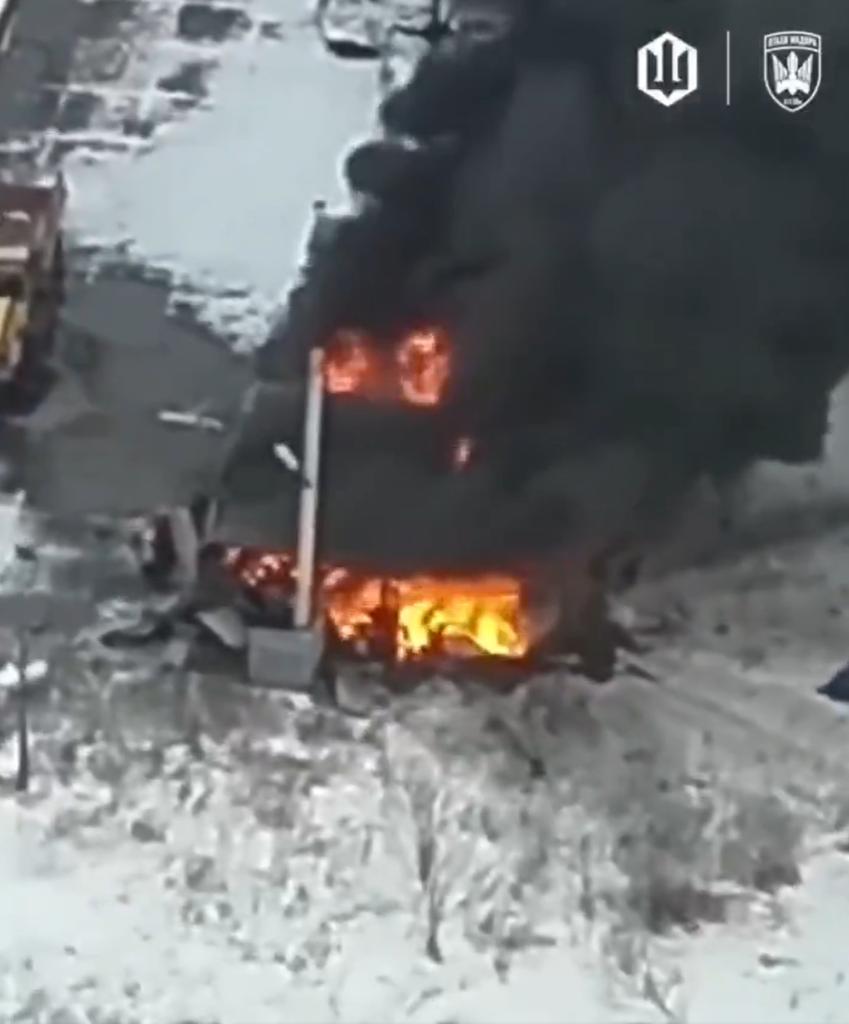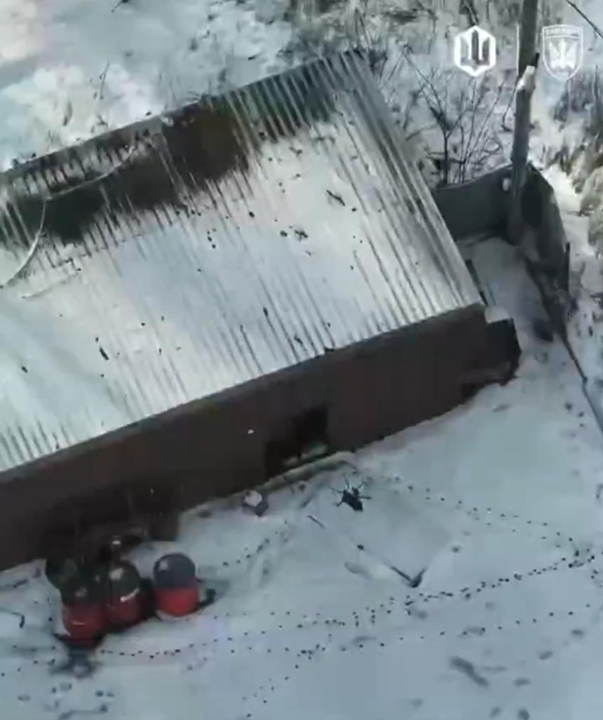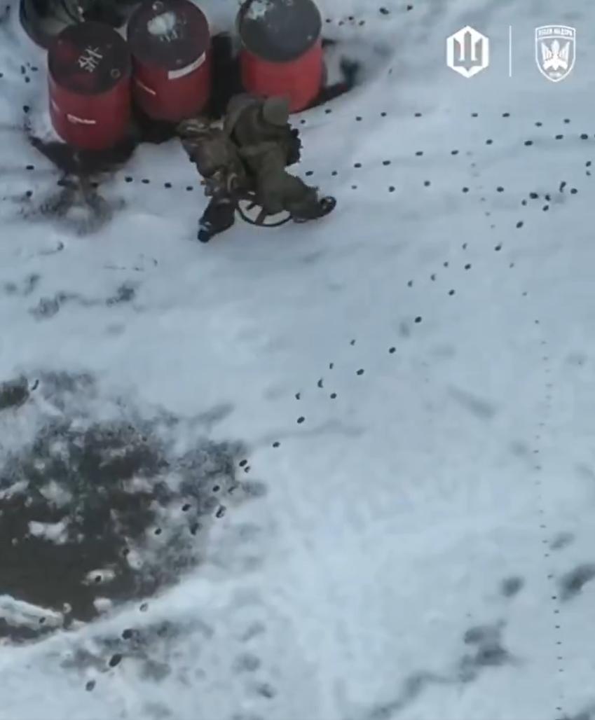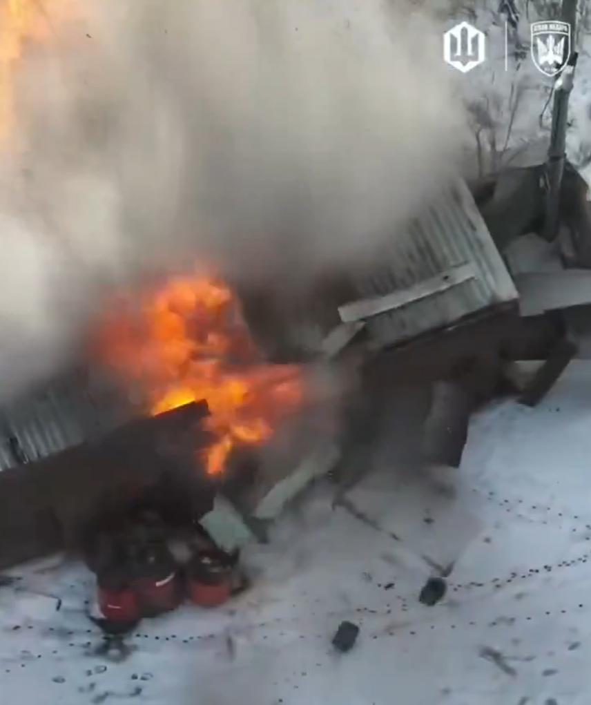 乌克兰FPV无人机于2026年1月21日拍摄,画面显示一名俄罗斯士兵进入一个堆满印有波兰国家石油公司ORLEN标志的红色油桶的雪地机库,随后一枚炸弹引爆,机库及其内部物品被夷为平地。 ORLEN是波兰的国有石油公司,为乌克兰军队提供燃料,因此这些油桶在持续不断的俄乌冲突中国际后勤援助。