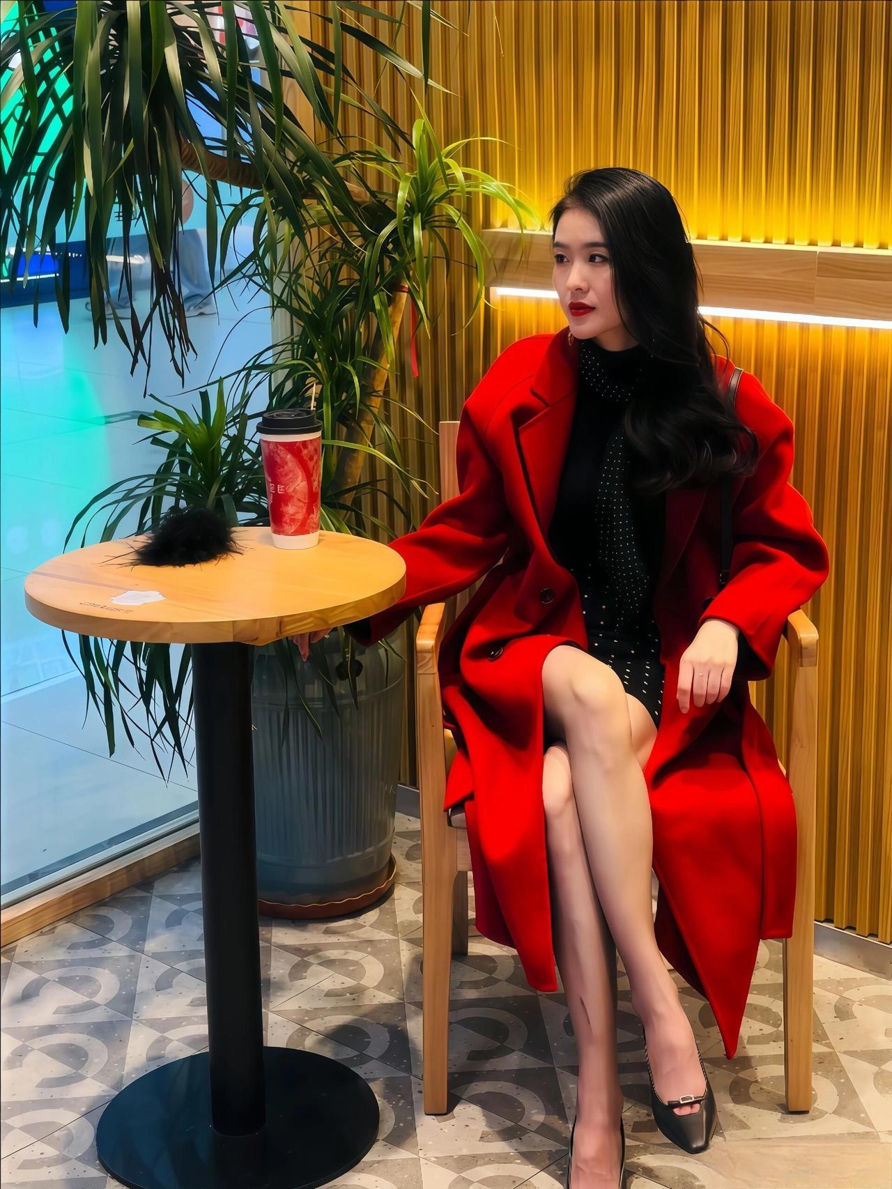 这套穿搭是明艳优雅的红黑轻熟风,把浓烈色调与精致细节融合。红色长款大衣自带明艳气场,宽松版型显松弛;内搭黑底波点裙+同元素丝巾,添复古精致感。 搭配银面高跟鞋强化轻熟质感,让红黑撞色造型更显高级,和暖光环境的氛围高度契合。充分展现穿着者明艳优雅的轻熟魅力。黑红色穿搭 红色秋冬穿搭 气质红大衣