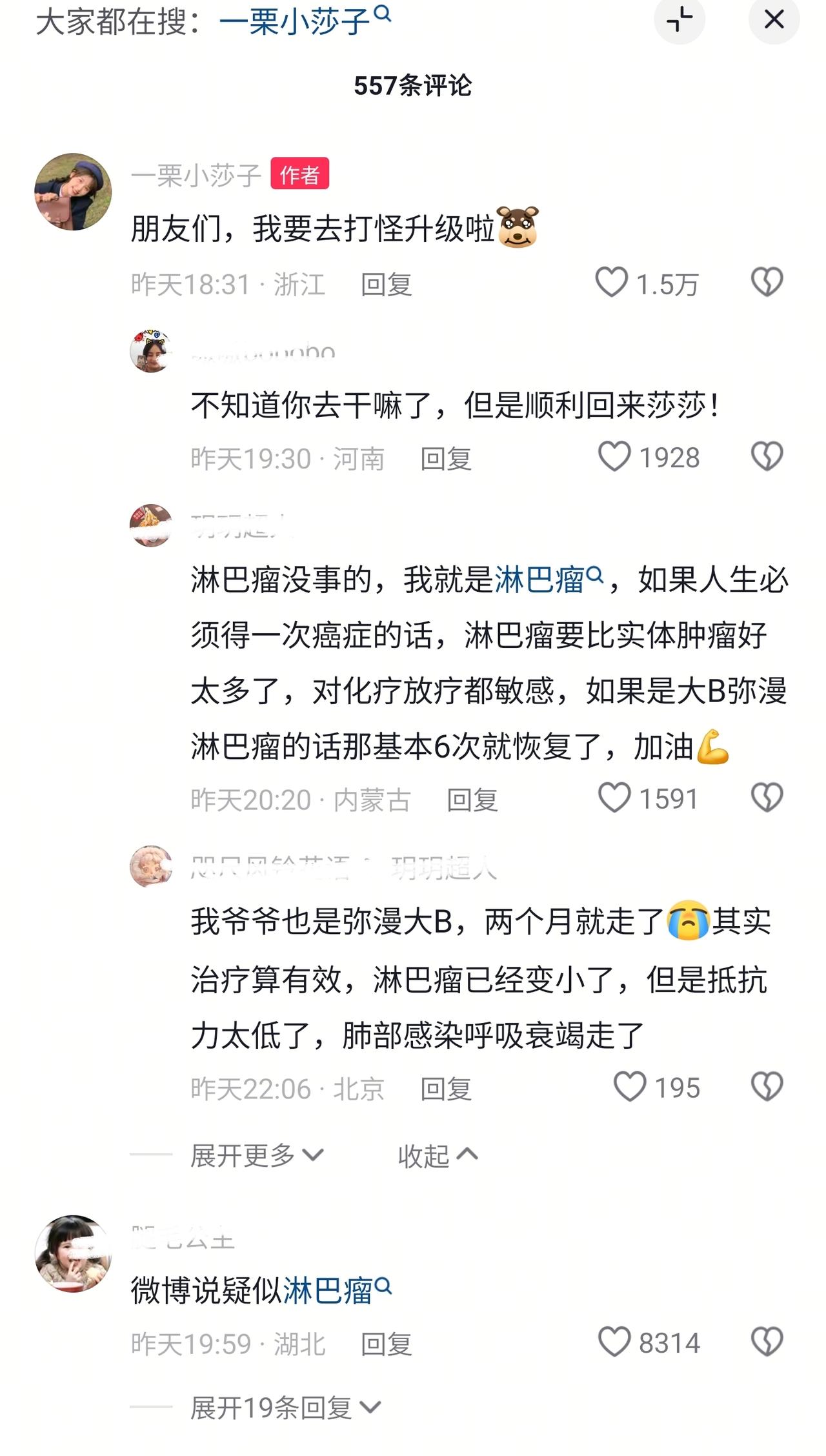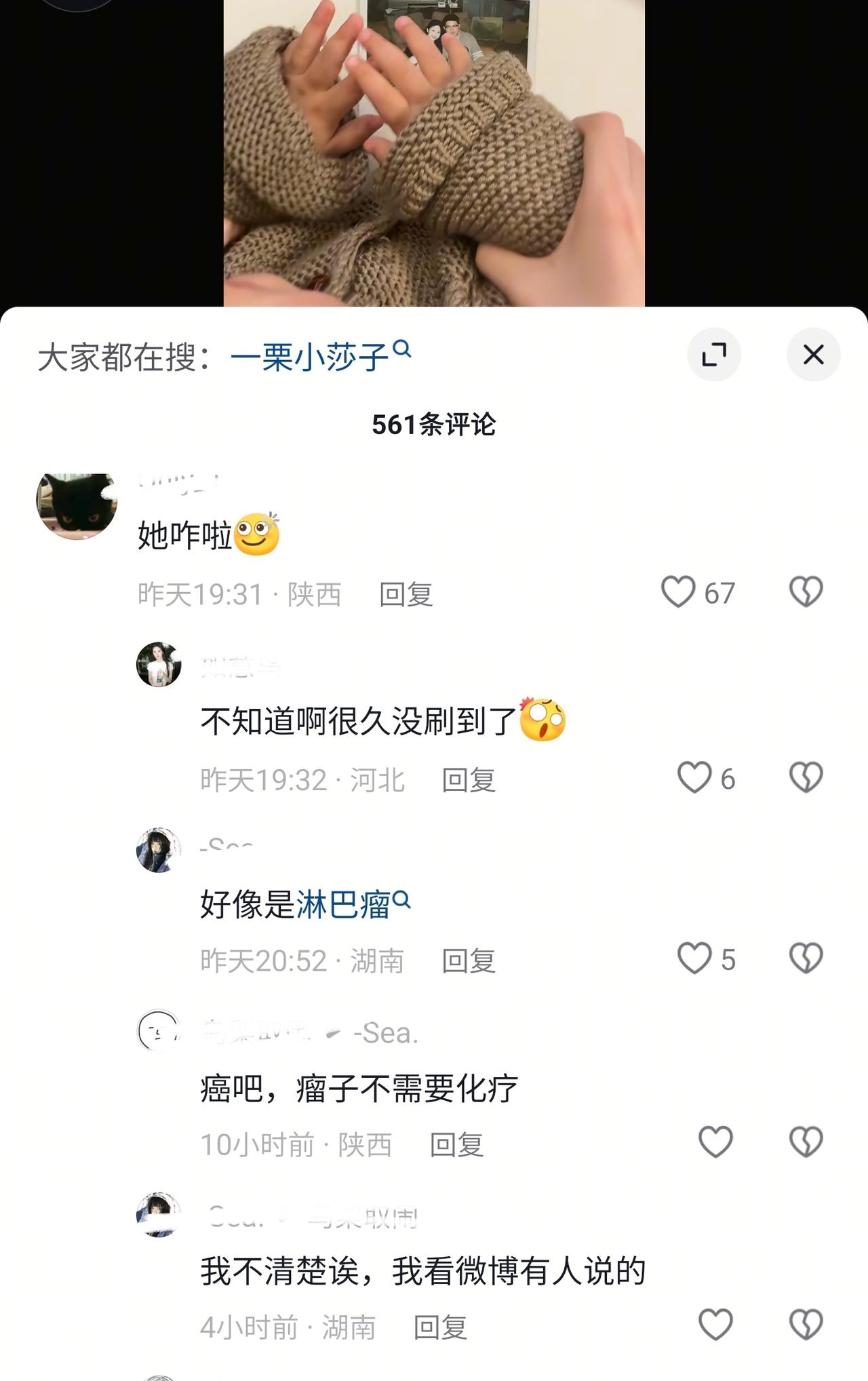 难受啊,靠“蓝衣战袍”火遍全网的一栗小莎子,居然确诊癌症要化疗了,情况看着一点都不乐观… 据说,她腋下淋巴痛了好几年,中途靠喝中药缓解不少。 本来以为中药能慢慢调理好,结果生完两岁的宝宝还没缓过来,就被通知要化疗。 才二十多岁啊,孩子才刚会喊妈妈,就要面对这么残酷的化疗… 真的太难受了,希望她能挺过去。 也想提醒大家,身体不舒服千万别硬扛,中药调理也得配合检查,健康真的比什么都重要! 小莎子一定要加油,等你打怪成功啊!