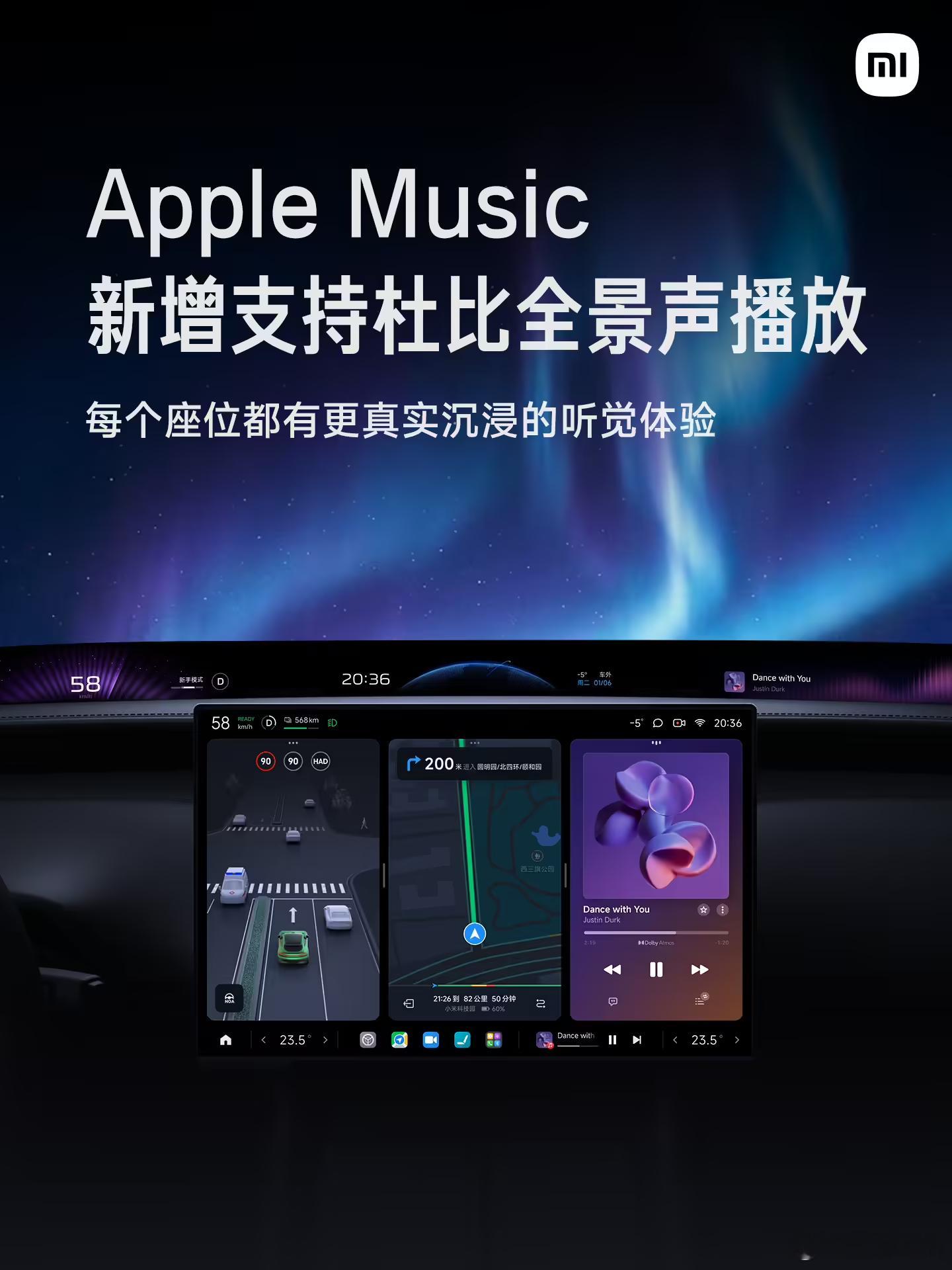 小米汽车AppleMusic现在已经支持杜比全景声播放啦,羡慕不