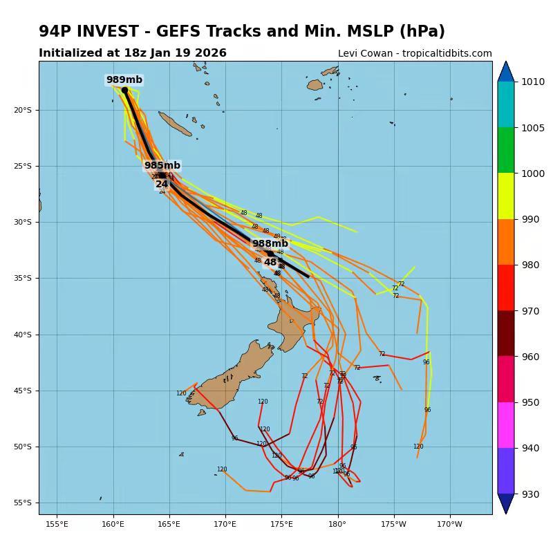 位于南太平洋的热带系统94P未来24小时内发展成为热带气旋的概率已被美国JTWC