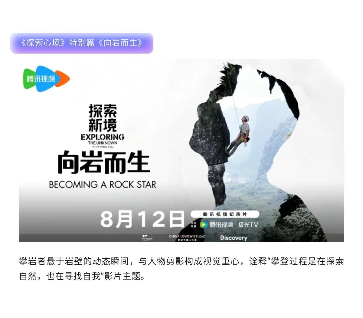 王一博《探索新境》特别篇《向岩而生》被“新时代・新影像”中外联合创作计划隆重推荐