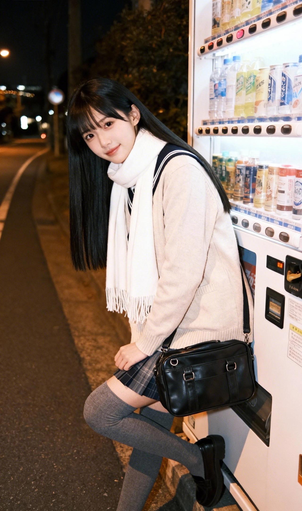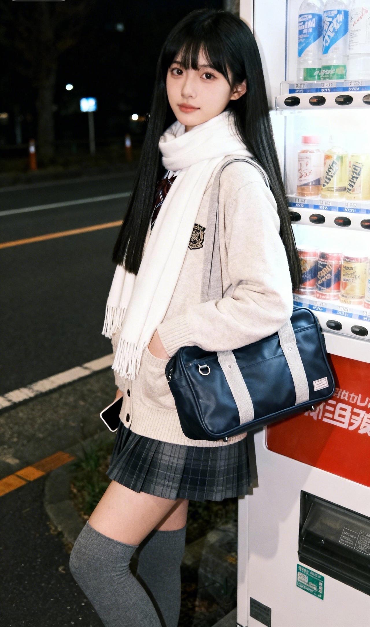 夜晚街头的少女温暖而自在。街拍.美女.穿搭.大长腿