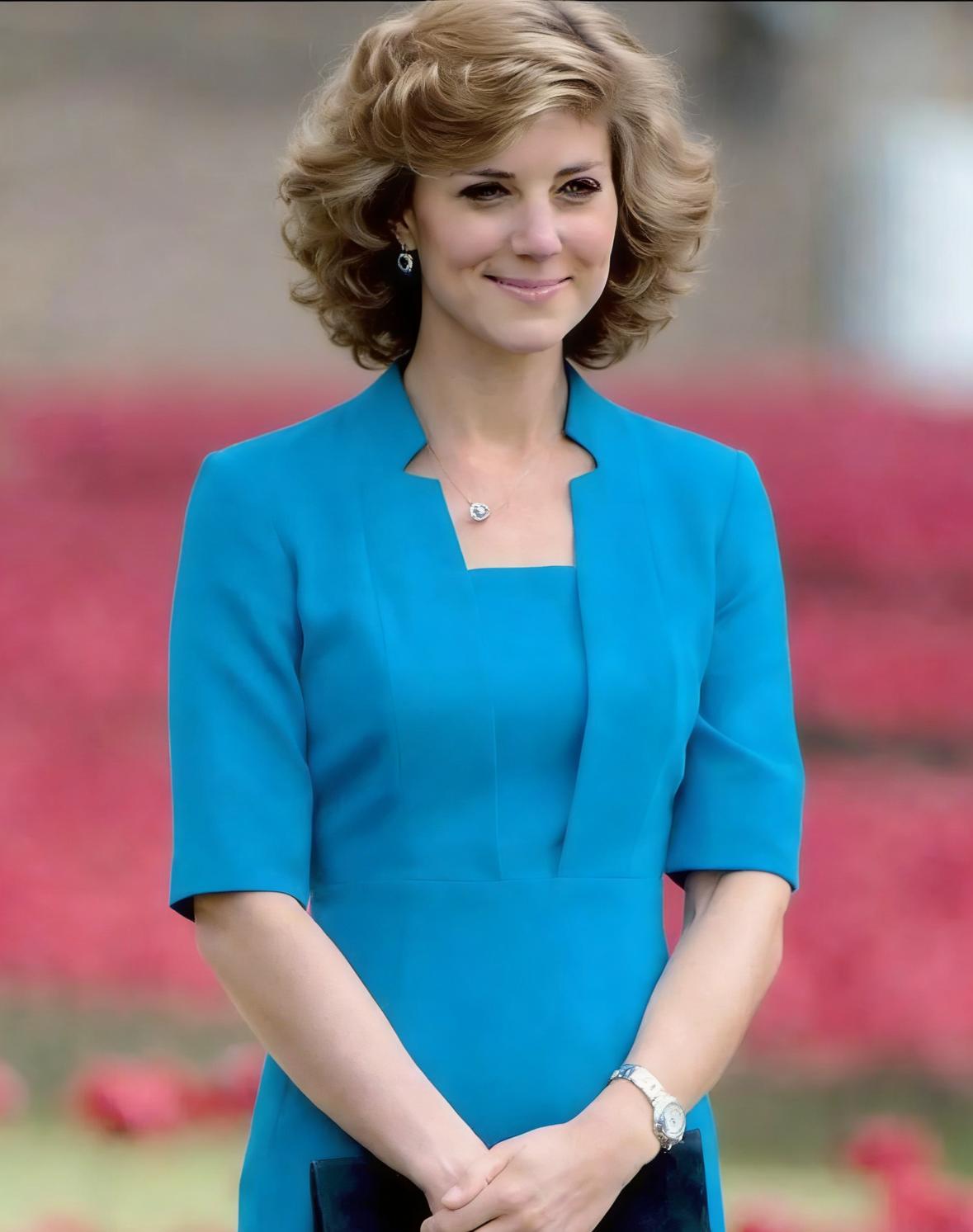 如果把凯特王妃的头发变成黛安娜王妃的发型会不会好看一点,但是这么一看这个发型在黛安娜王妃身上特别好看,但是放在凯特这里就特别显老。 凯特还是适合棕色长发,不适合短发,也可能是颜色的问题,你们感觉呢?