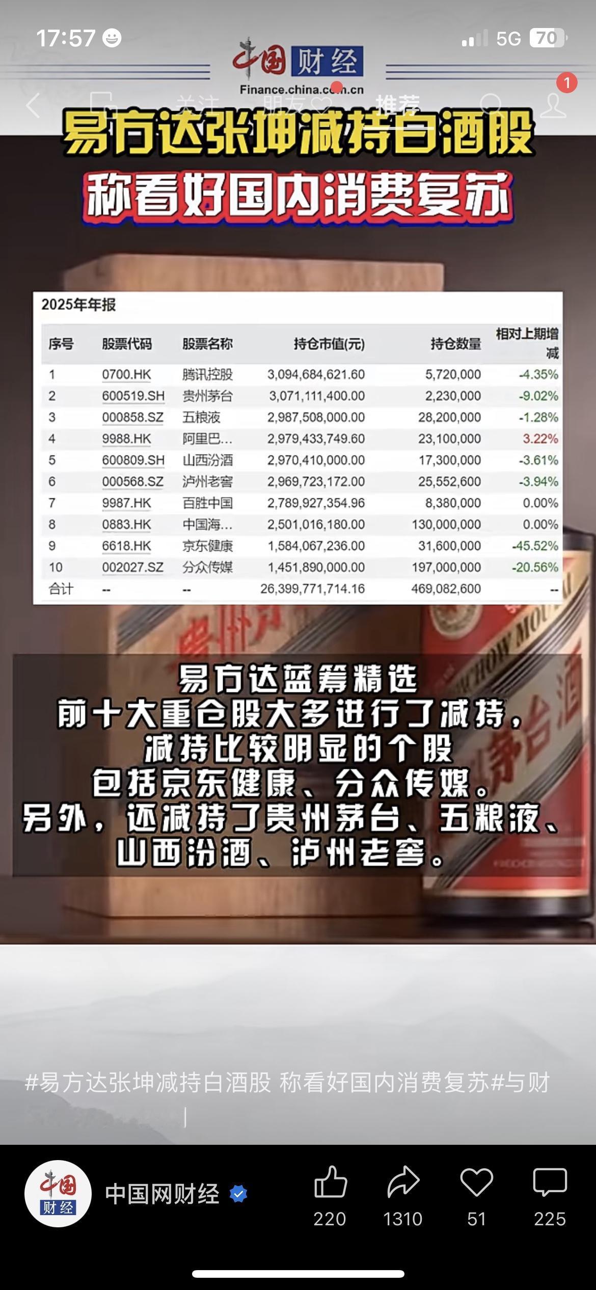 张坤悄悄跑了!易方达最新季报显示,他管理的基金狂减茅台、五粮液超9%,但同时又公开表态“看好国内消费复苏”。懂的都懂,这是大佬在调仓换股,把资金转向更有潜力的大众消费赛道。普通人别再死守白酒股接盘,选覆盖出行旅游、平价消费的宽基类产品更稳!你会跟着减仓还是继续持有?A股