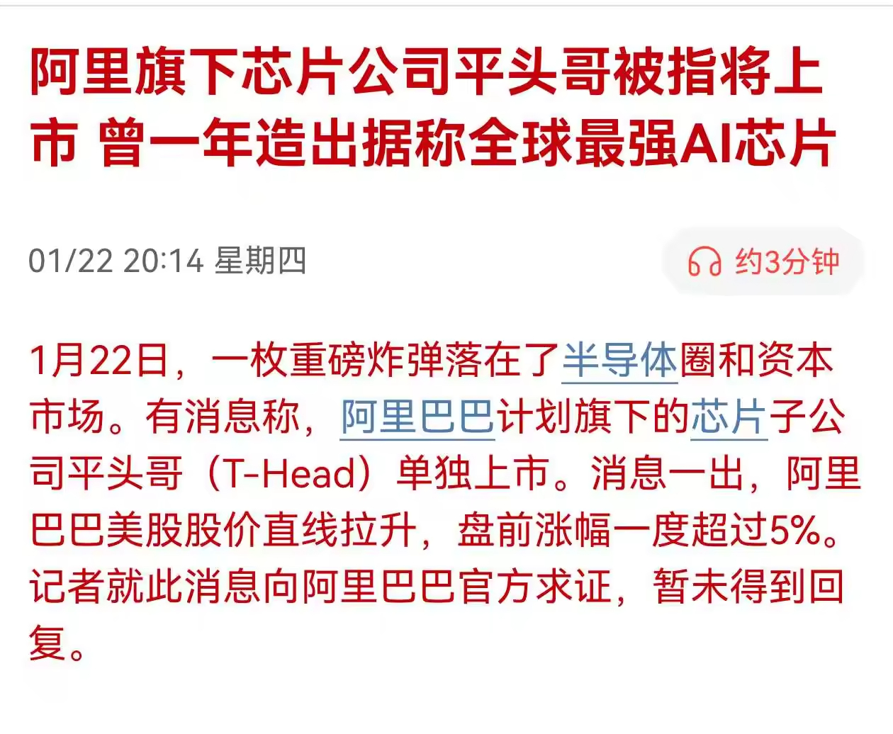 AI大件事,阿里平头哥也将要上市了 阿里旗下芯片公司平头哥拟独立上市
