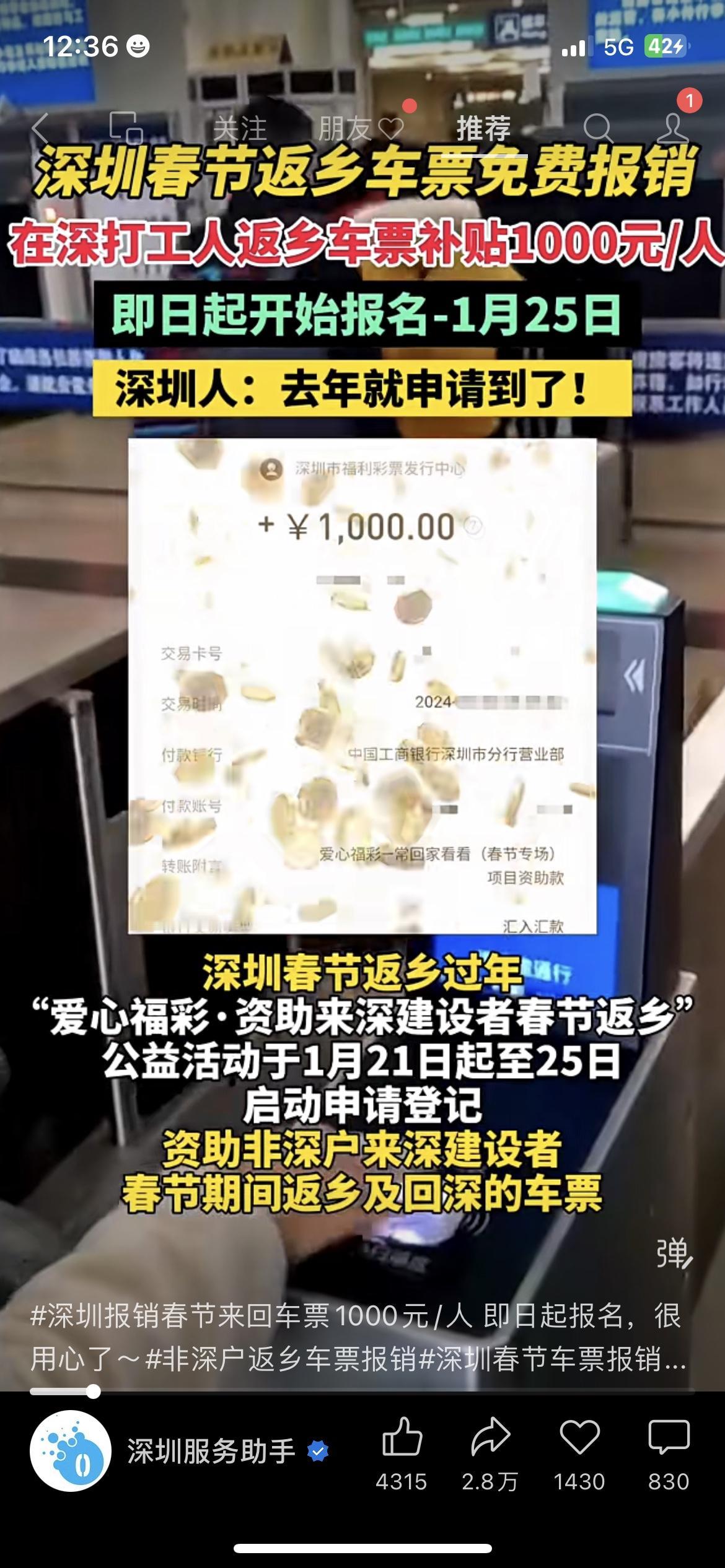 打工人直接领钱!深圳返乡车票补1000元! “爱心福彩·资助来深建设者春节返乡”活动启动,非深户凭车票就能申请,1月21-25日报名,去年已经有人领到补贴啦!你会去申请这波福利吗?深圳民生 打工人福利深圳补贴