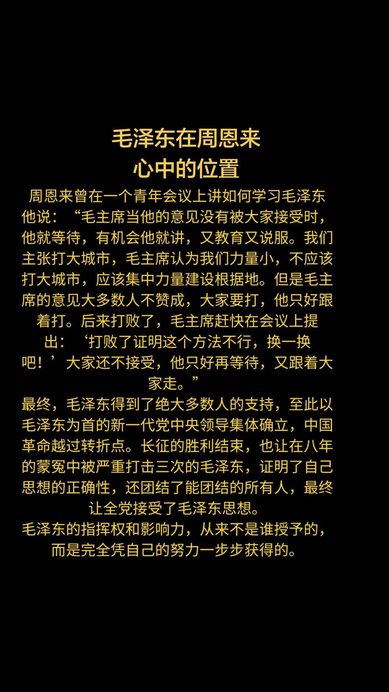 毛泽东在周恩来心中位置。毛泽东在周恩来心中位置