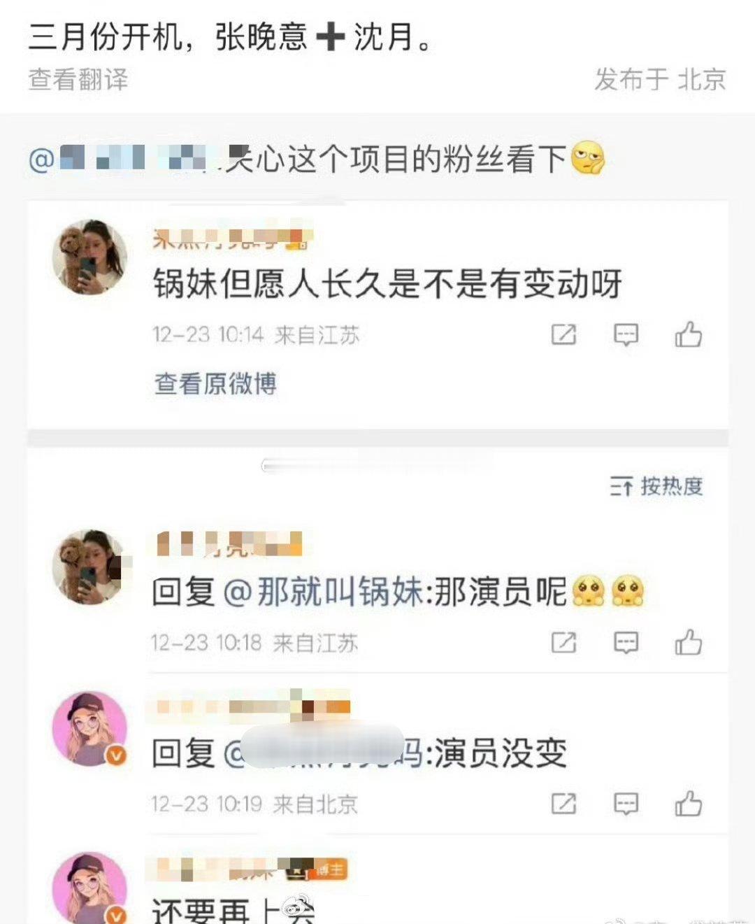 tg. 沈月粉丝也开始了,要求《但愿人长久》换掉网传男主张晚意。。。