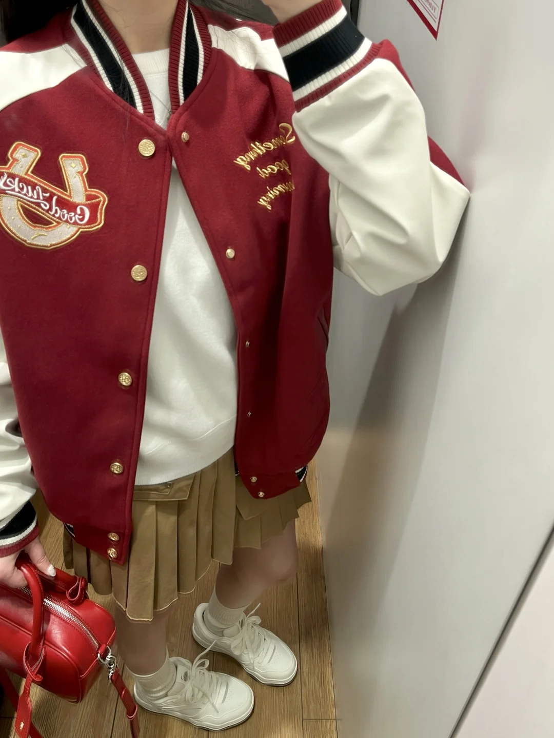 新的一年当然会有好柿发生啦🧨 提前预习一下我的新年look吧! 好喜欢这种明媚的感觉ヽ(*´∀`)ノ゚~ 这件复古红棒球服 新年氛围感简直拉满! 没想到卡其色和新年红也能碰撞出不一样的感觉 过年也可以休闲轻松起来🥰 🤍搭配上安踏波浪鞋4 整体看起来青春又活力~ 嘿嘿已经开始期待红红火火迎新春噜!!! 这里提前祝大家♥️ 新的一年“马上好运 ”事事如意~