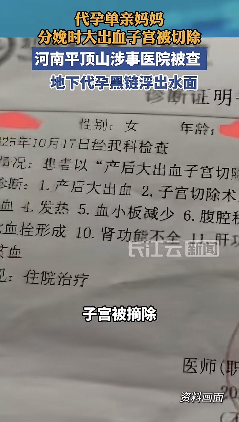 2025 年 9 月,单亲妈妈乔乔受金钱诱惑参与代孕,在平顶山博爱医院分娩时大出血,转院抢救中子宫被摘除。2026 年 1 月 17 日,涉事的卫东区妇幼保健站原站长赵国召被查,博爱医院也停业了。 乔乔被代孕机构安排住特定小区,和另外两名孕妇一起,还被禁止交流、限制活动。当时代孕圈都传博爱医院条件差、服务不好,可机构还是把乔乔安排到这。这地下代孕黑链太可恶了,为了钱不顾代孕者的死活,必须严惩! 非法代孕 严查代孕罪恶链 企业代孕 黑暗代孕 顺产大出血 美国代孕 湖南长沙代孕