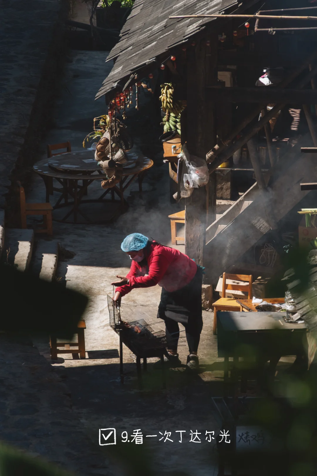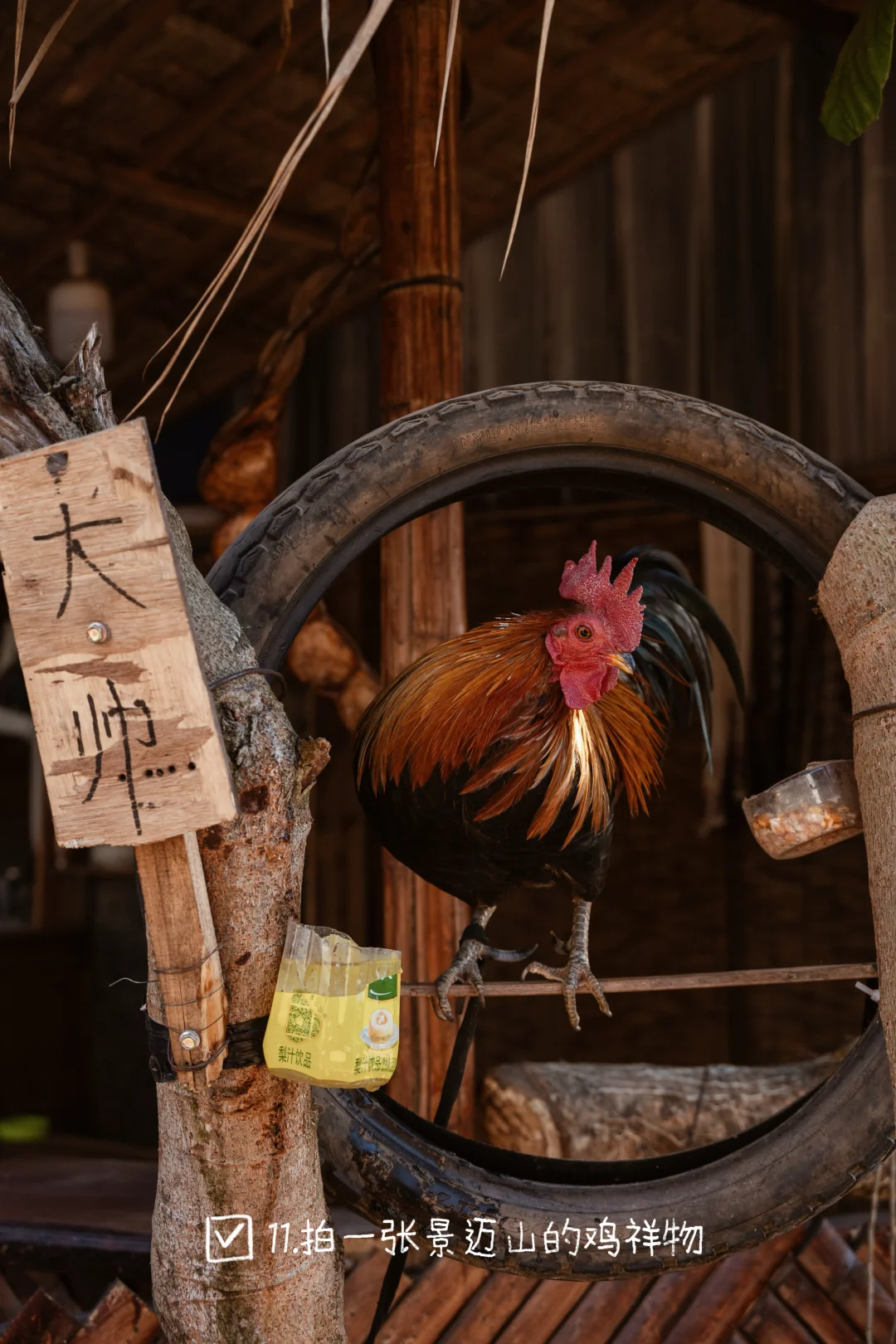 11.拍一张景迈山的鸡祥物:糯干等古寨办斗鸡比赛的传统,所以在很多家门口养一只大公鸡。