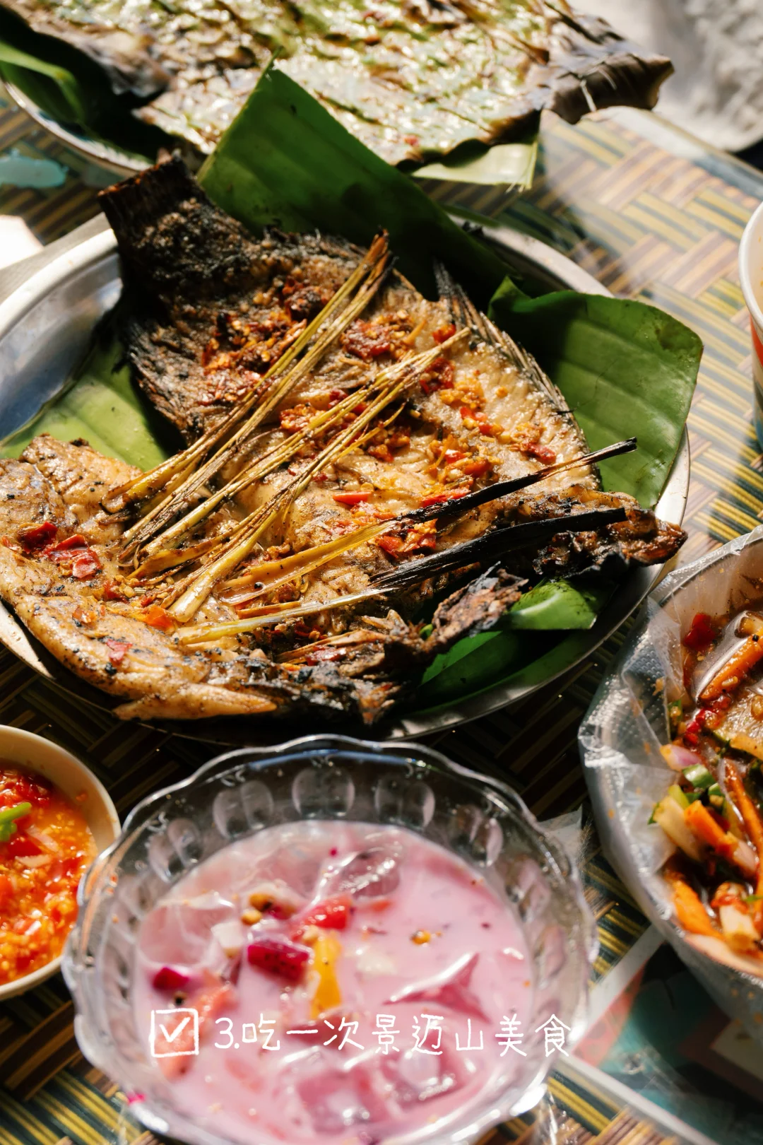 3.吃一次景迈山美食:糯米饼、螃蟹脚炖鸡、茶叶炒牛肉、傣氏烧烤、薄荷炸排骨等等都可以试试。