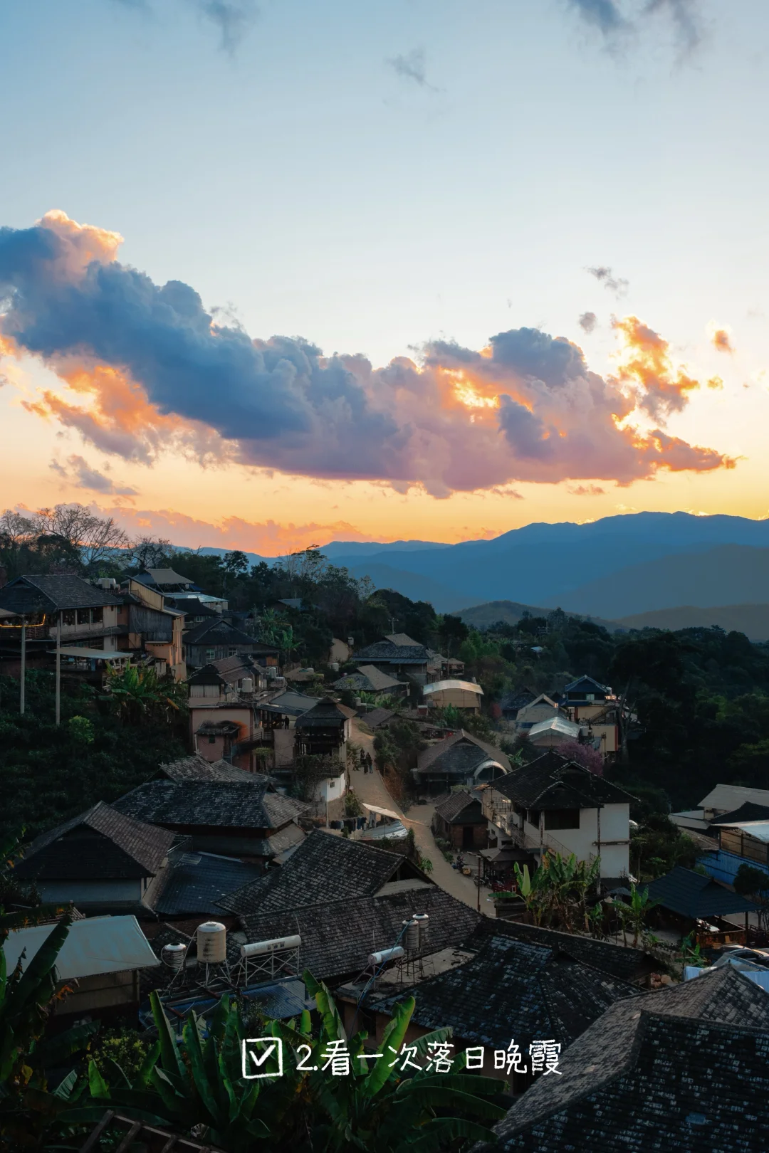 2.看一次落日晚霞:芒洪位置高看日落最好(旅人蕉附近视野好),其次可以去芒景乃哩咖啡附近。