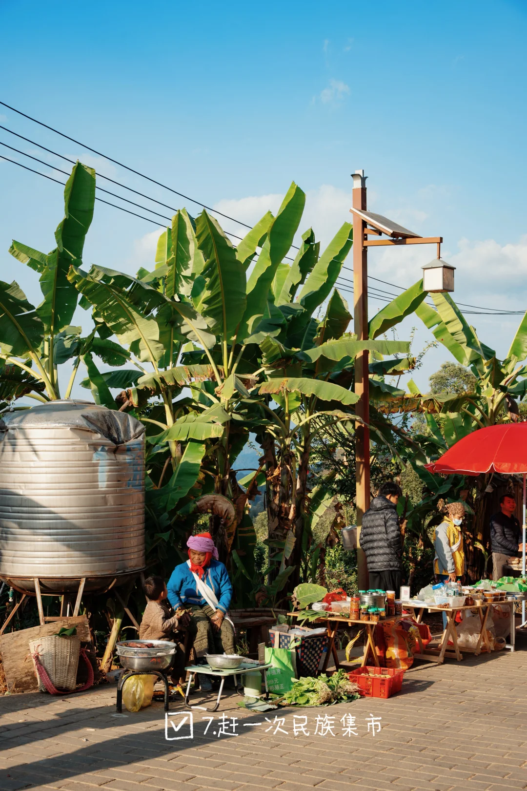 7.赶一次民族集市:当地人把赶集称为赶摆,芒景赶集时间为每周六早上(雲山濮茶民宿旁),芒洪为每周五早上,糯干为周五下午,景迈大寨为周日早上。