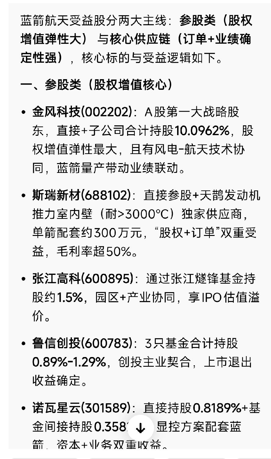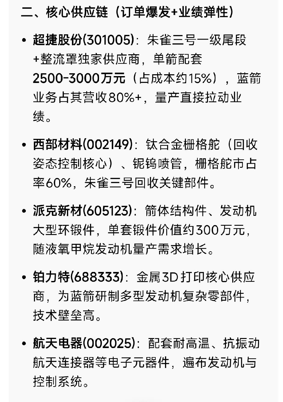 太快了,简直快得惊人!蓝剑航天今晚刚披露首轮问询已经结束,这速度着实令人惊叹。咱们村里的工作效率相当高,推动国家急需的高科技企业上市可谓争分夺秒。这充分彰显了国家对高科技的大力支持与鼓励。 相关股票,像金风科技,还有我持有的电广传媒,明天理应也会有所表现。 航天发展股票 航天发展市值 航天科技控股 航空航天股 蓝箭航天 A股航天 蓝箭科技