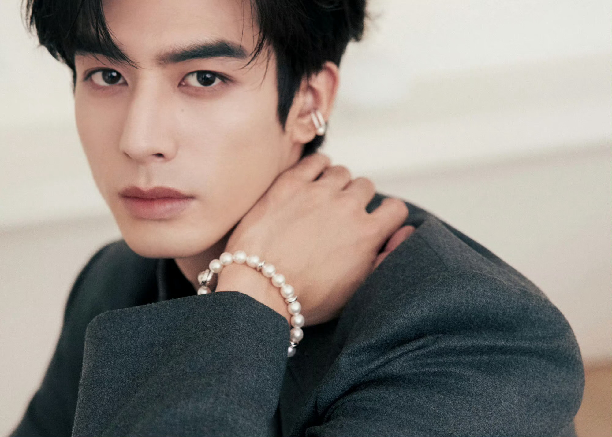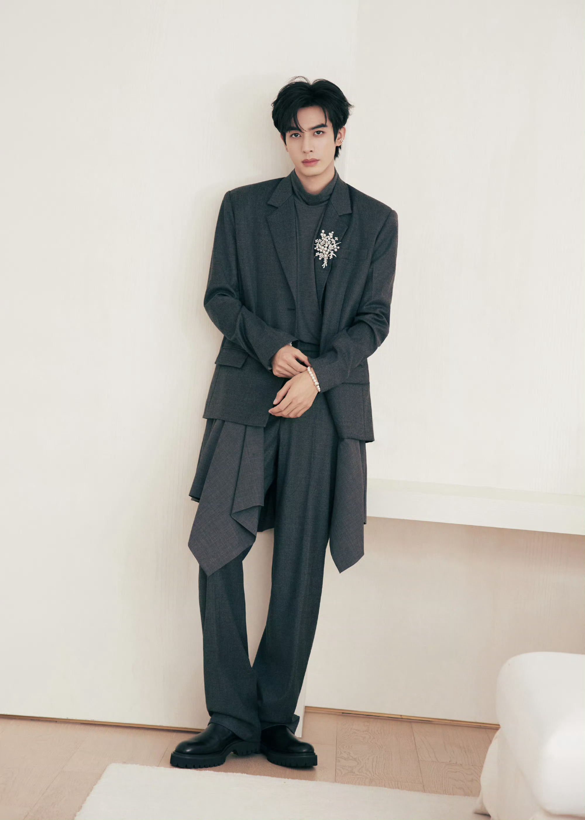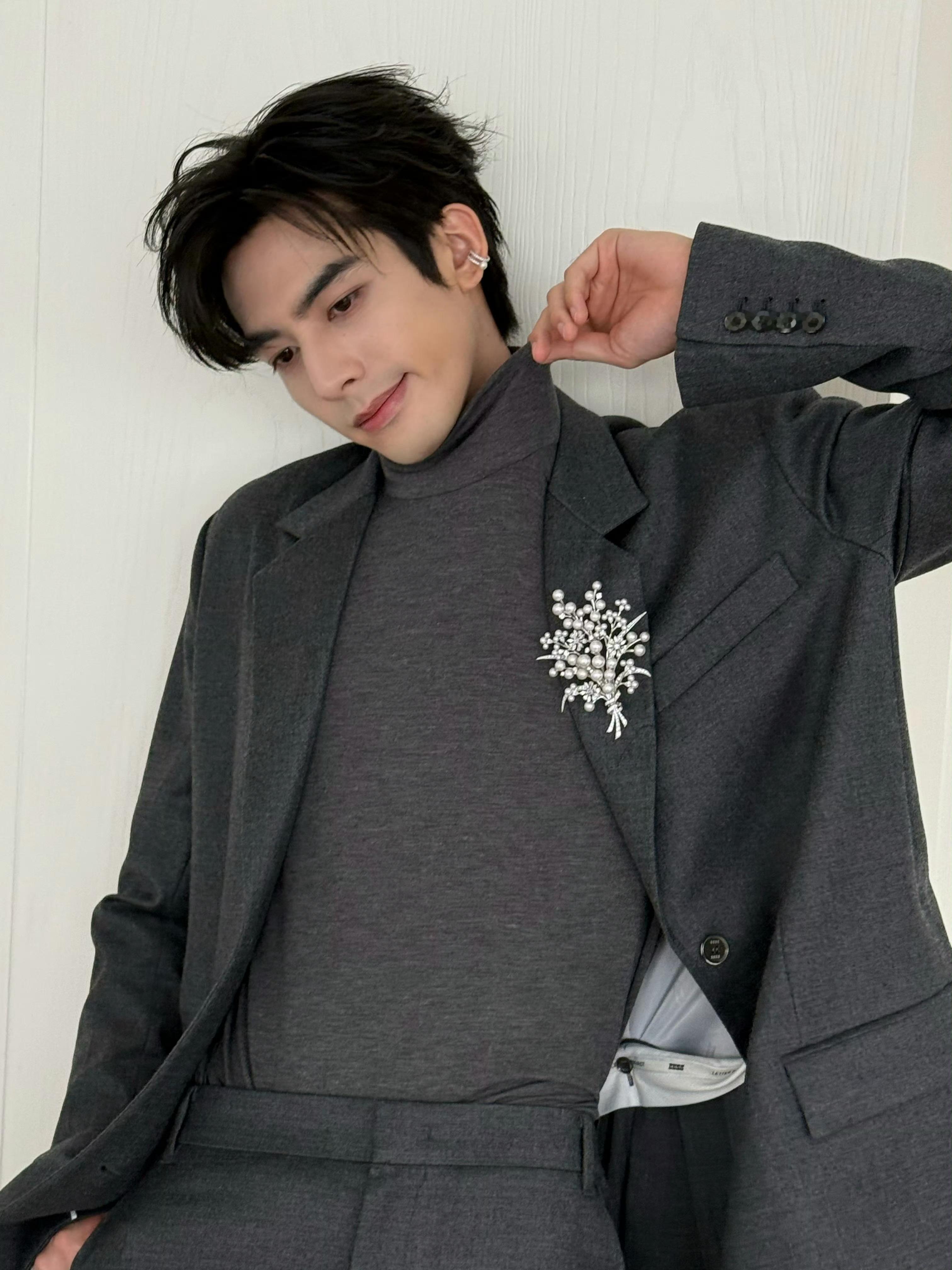 宋威龙 in MIKIMOTO 📸💎 今日出席新加坡活动造型,一身深灰色西服套装搭配全套御木本高级珠宝,领边一枚错落有致的珍珠胸针,耳间点缀珍珠耳骨夹,莹润珠光与璀璨钻石交织,衬得他格外矜贵优雅,简约而不失高级质感,尽显翩然俊逸的绅士格调。宋威龙珍珠造型