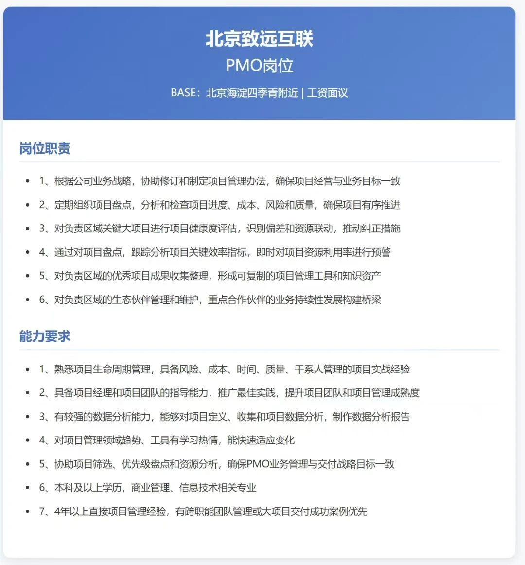 【内推】最近几个PMO,项目经理,项目部经理