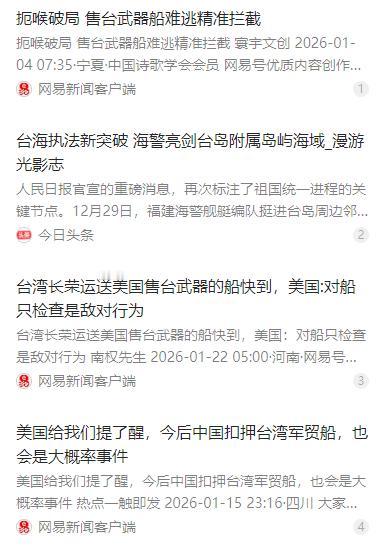 台湾长荣运送美国售台武器的船快到了,美国声称,谁要是对船只进行检查,就是敌对行为。 麻烦看官老爷们右上角点击一下“关注”,既方便您进行讨论和分享,又能给您带来不一样的参与感,感谢您的支持! 近期台海周边的海上局势因美台的军事勾连再度紧张,美国售台的一批武器由台湾长荣、阳明等本土航运公司负责承运,相关货轮正驶向台海敏感航线,而美方竟公然放话,称任何国家对这些运输武器的船只实施检查,都属于敌对行为,这番言论尽显霸权主义的蛮横。 美方此次让台湾本土航运企业承担武器运输任务,实则是打了民用船舶的算盘,认为以此能降低中方的甄别和执法难度。但美方显然低估了中国维护国家主权的决心和能力,也错判了中方的海上执法实力,其所谓的 “敌对行为” 说法,更是对国际法准则的无视和践踏。 面对美台的这一敏感军事运输行动,中国海警在 2025 年底发布了名为《扼喉》的宣传海报,海报以海警舰艇列阵、海上巡航力量构建的高密度监控网为核心视觉,直观展示出中方对台海所有军事运输路线的实时锁定能力,也亮出了扎实的海上执法底气。 这张海报并非单纯的视觉警告,而是中方海上执法实力的真实体现。中国海警早已与解放军海空力量建立起常态化协同巡航机制,这套机制让台海的海上管控形成了无缝衔接的合力,从远海到近岸,都有对应的力量值守和应对。 中方依托各型海警舰船、解放军巡逻机、岸基雷达以及各类无人侦察设备,搭建起了覆盖台海全境的立体监控网,各类设备 24 小时不间断运作,能精准识别海上目标的航行轨迹、装载货物等关键信息,让任何涉台军事运输都无所遁形。 在这套完善的监控体系支撑下,中方对于台海范围内涉嫌运输武器的目标船只,完全可以依据中国相关法律,依法采取警告驱离、登临盘查、扣押查验等一系列执法措施,这些措施的实施有充分的法律依据,也有成熟的实操能力。 长荣海运作为台湾航运龙头企业,也是此次美台武器运输的核心力量,此前就曾多次参与承运美国售台的重型装备,其一边靠着大陆市场获取巨额营收,一边却充当美台军事勾连的 “搬运工”,这种行为已然触碰了中国的法律红线和原则底线。 长荣、阳明等台湾航运公司参与美台军事装备运输,绝不是简单的商业行为,而是涉嫌危害中国国家安全的违法行为,不仅可能面临中国法律的严厉追责,还会遭遇实打实的商业风险,其国际商业信誉会因此大打折扣,失去市场的信任。 除了商业信誉受损,这些涉事企业还可能被国际金融机构限制合作,各类融资、信贷业务都会受到影响,同时船只的航线规划、港口停靠也会遭遇诸多限制,直接导致企业的整体运营成本大幅上升,最终为自己的错误选择付出沉重代价。 对于中方在台海的相关管控和执法行动,国际舆论普遍表示理解和支持,绝大多数国家都基于一个中国原则,认可中国维护台海主权和领土完整的正当权利,这也是国际社会的主流共识,更是不容撼动的国际政治和法理基础。 众多国际问题和军事专家也纷纷指出,中方在台海开展的监控和执法行动,既符合《联合国海洋法公约》等国际法准则,也有《中华人民共和国海警法》《反分裂国家法》等国内法作为坚实后盾,完全具备法理和实操的双重正当性。 美方刻意将中方的正当执法行为定义为 “敌对行为”,恰恰是混淆了是非黑白,其言论本身就违背了国际法和国际社会公认的基本准则,不仅无法为美台的军事勾连撑腰,反而进一步强化了中方采取合法措施反制的正当性,也让国际社会看清了其霸权本质。 美方一直试图通过对台军售和各种军事操弄,不断挑动台海局势紧张,但其所谓的军售,对台当局而言不过是 “画饼充饥”。此前美方售台的多款武器都存在严重的交付拖延,台当局付了巨额款项,却迟迟拿不到装备,早已沦为美方的 “提款机”。 而此次美方运输的售台武器,即便成功抵台,在解放军强大的海空作战能力和中方完善的海上管控体系面前,也根本无法发挥所谓的作用,不过是台当局寻求 “以武谋独” 的又一徒劳尝试,最终只会成为加剧台海局势紧张的导火索。 台海是中国的台海,台湾的任何航运企业都不能突破一个中国原则的底线,更不能为美台的军事勾连提供便利。中方在台海的执法行动只会越来越常态化,对于任何危害国家主权和领土完整的行为,都会采取坚决有力的措施予以反制。 美方的霸权言论和美台的军事勾连,都无法阻挡中国实现国家统一的历史大势,任何试图挑战一个中国原则、分裂自己国家的行为,最终都会以失败告终,而那些为虎作伥、参与其中的企业,也必然会为自己的行为承担相应的后果。