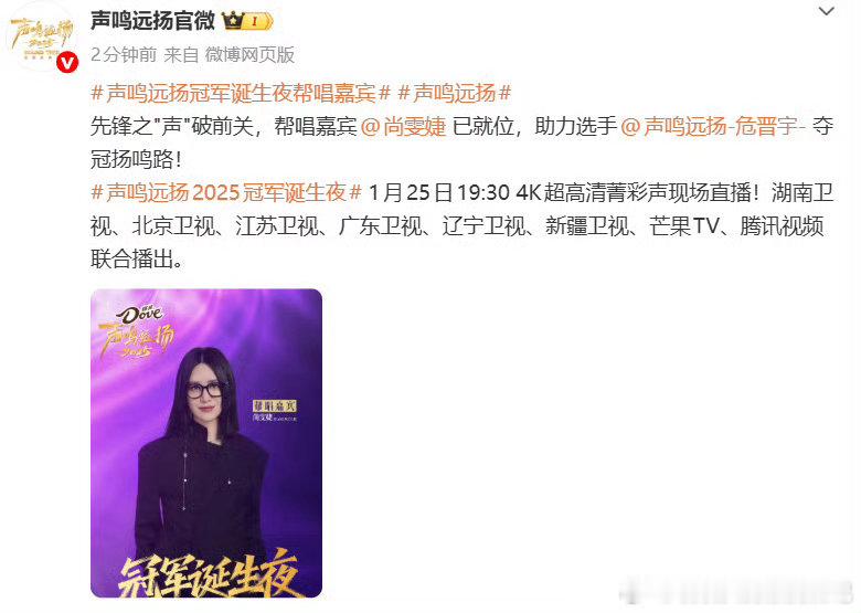 尚雯婕危晋宇合作官宣声鸣远扬强强联手的合作从来不会让人失望,尚雯婕的专业水准加上危晋宇的全能表现,这场音乐碰撞一定亮点十足。
