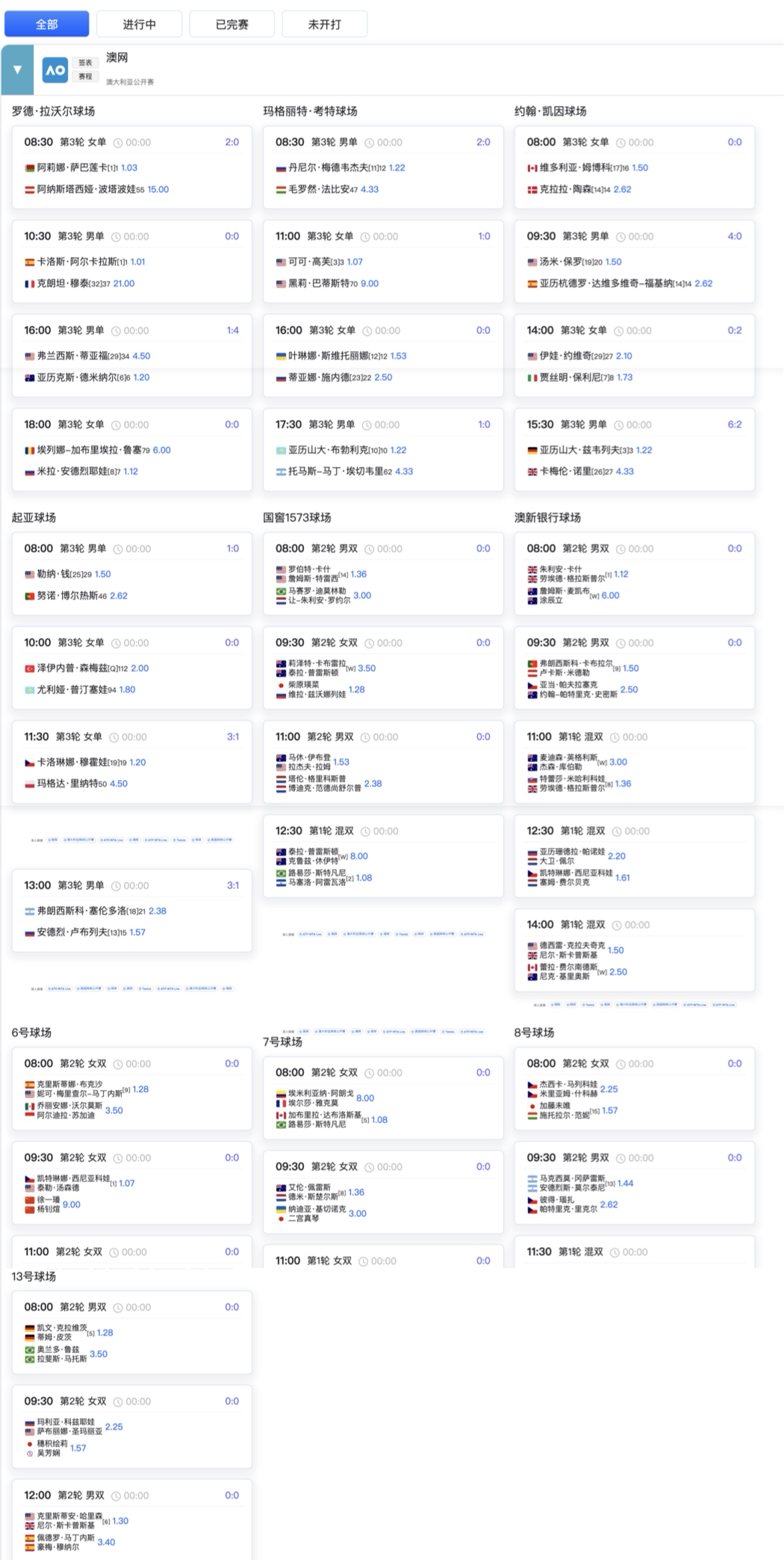 【澳网2026 第6️⃣比赛日赛程(1月23日)】🇨🇳中国力量6号球场第二场:徐一璠/杨钊煊将代表中国选手再次在本届澳网挑战头号种子💰潜在巅峰对决考特球场第一场+起亚球场第一场:看梅总和钱同学能否排除万难,实现一年内的第四次会师考特球场第二场+起亚球场第三场:看高芙能否与自己的福将穆霍娃会师(击败其的赛事均夺冠)🦆家禽组罗德·拉沃尔球场第二场:阿卡冲击全满贯第三战,面对妖刀穆泰,预计会有超多的hotshot👁留在现场跳舞警告起亚球场第二场:普汀塞娃将再次面对喧闹的观众,看她会做出怎样的回应其余球员赛程请见图2,具体开赛时间关注前续进程⬇️