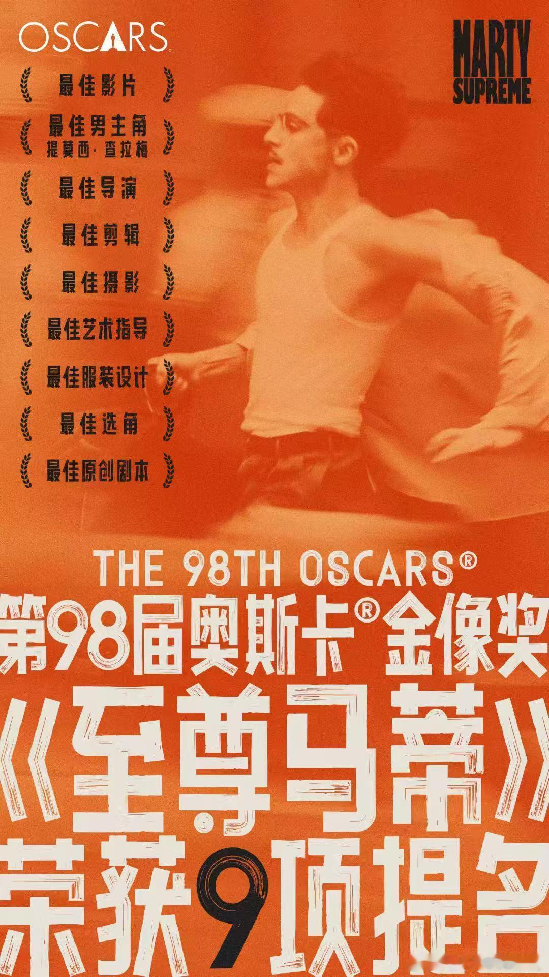 《至尊马蒂》甚至出了本届奥斯卡九项提名的简体中文公关海报,这是要引进了啊 奥斯卡提名跨年电影愿