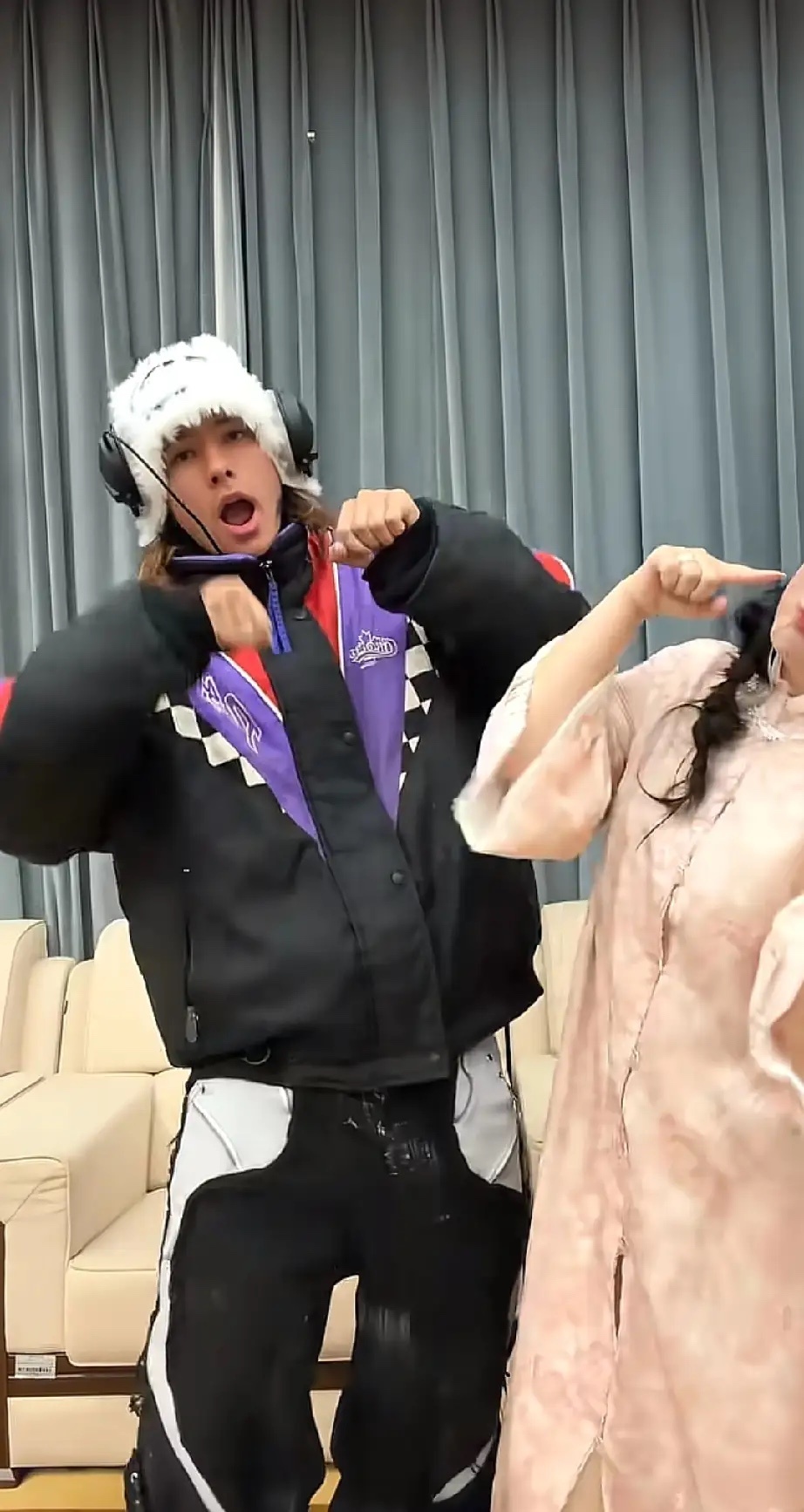 龚琳娜儿子太帅了,她和前夫老锣生的小儿子颜值颇高,最近她儿子雅酷回国看她,母子俩在家连看了三天电视,现在雅酷又陪着龚琳娜出来工作,母子俩还一起跳手势舞。