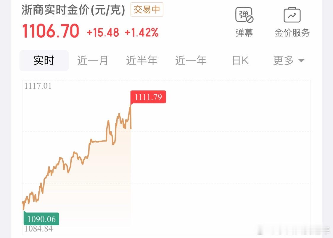 黄金再度直拉金价突破1111了………一个月就能涨十多个点,这还是黄金吗?比股票还猛呀