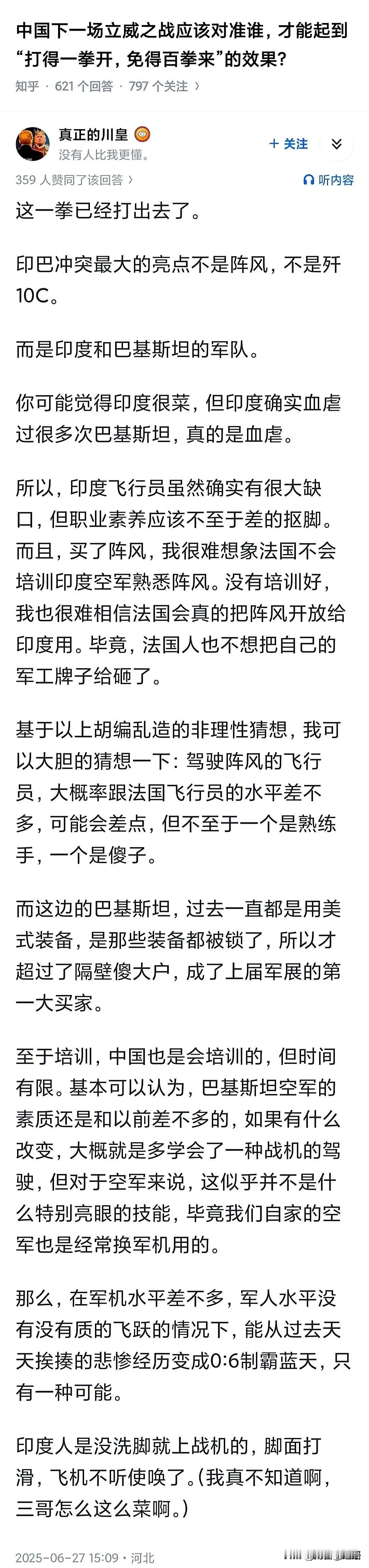 印巴的那一场空战,只是证明它有效,并未将他们打服。 最近印度又打算买112架阵风战斗机,似乎已忘了这种战斗机在5.7中是损失最大的,也忘了这种战斗机无论是盾还是矛都无法对巴基斯坦构成实质性的威胁。 但他们再购阵风是为了什么?说到底,他们认为,如果还有下一次,阵风战斗机一定会有机会,不然为什么会花大价钱买呢? 也就是说,那一场空战,他们觉得被针对了,不服,还想找机会,以同样的方式还回来,其实,印度的这种不服也曾发生这场空战的别几天。 很多人可能忘了,印度在这场空战的前几天曾炒掉一位空军的副参谋长,其原因是他吊胆直呈莫迪,要求取消这次行动,而他之所以要这样作,不是因为畏战,而是几天前发生的一次“偶遇”。 在那一次“偶遇”中,阵风意外碰上了歼10CE,当时他们分边盘旋于边界两侧,四架阵风与两架歼10CE对上了眼,最近的时候,两机相距仅37公里,这是一场“看不见”的空战,几分钟后,四架阵风率先退出,显然,他们已处下风。 制电子权是现代空战开辟的新疆域,这里不止是在多域多机多模状态下的态势感知,还包括电磁干扰、欺骗与攻击,阵风拥有“频谱”电子战设备,在中东的多场演习中,这套设备据说曾让俄罗斯的装备吃过亏。 显然,美国深入委内瑞拉的境内,如无人之境的绑架了马杜罗给他们打了一记强心针,这是西方体系作战的顶级表现,抢眼的不再是“嗖嗖”攻击的导弹,而是在周密组织下的“制电磁权、声波武器”。 与美国的这场战争相比,当时印度空军出动的规模一点也不逊于美国,但结局炯然,究其原因,那就是印度的装备及体系化层次还未达到,而这些,很可能是他们与西方分享这场空战经验的结果。