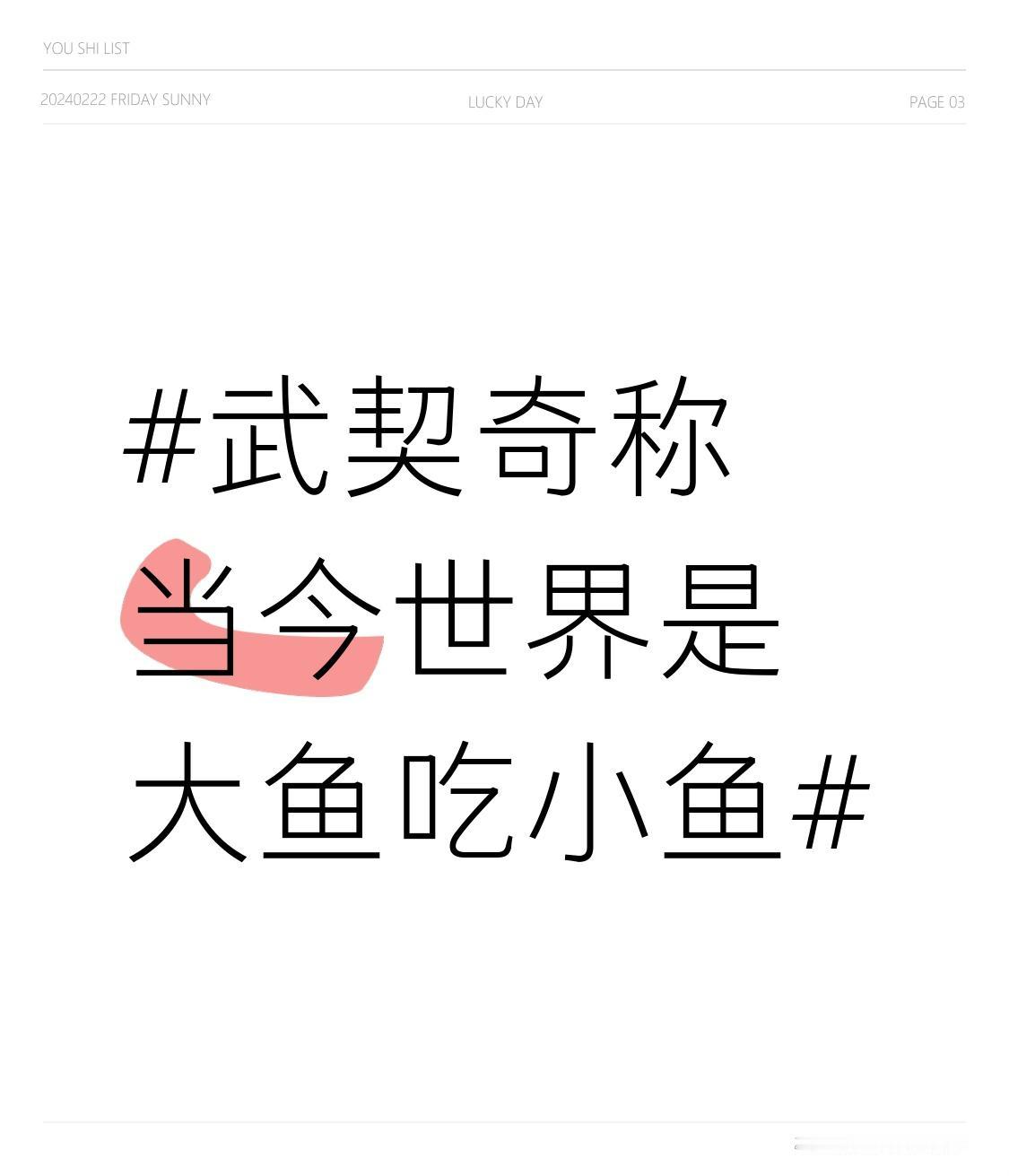 武契奇称当今世界是大鱼吃小鱼 武契奇说当今世界是大鱼吃小鱼,这话真挺现实的。在国际舞台上,强国凭借着强大的军事、经济实力,常常在国际事务中占据主导地位,那些小国只能在夹缝中求生存。就像之前的一些地区冲突,大国为了自身利益介入,小国根本没有太多的话语权。塞尔维亚作为一个相对较小的国家,武契奇肯定深知这种无奈。他这么说,也是在替众多小国发声,希望国际社会能多一些公平与正义,别让“弱肉强食”的丛林法则一直横行。毕竟,世界本该是多元和平的,而不是大鱼肆意吃小鱼的残酷局面。