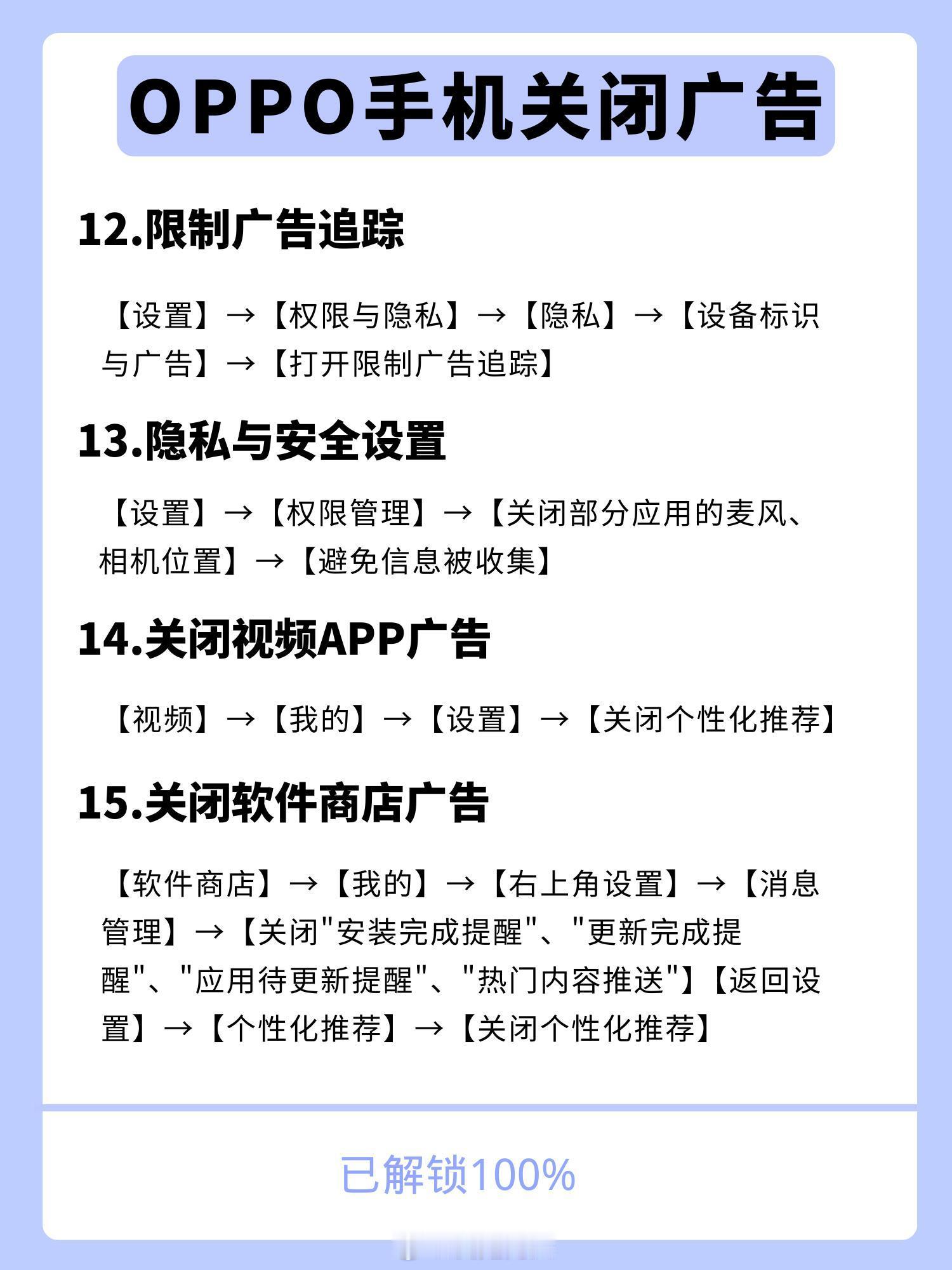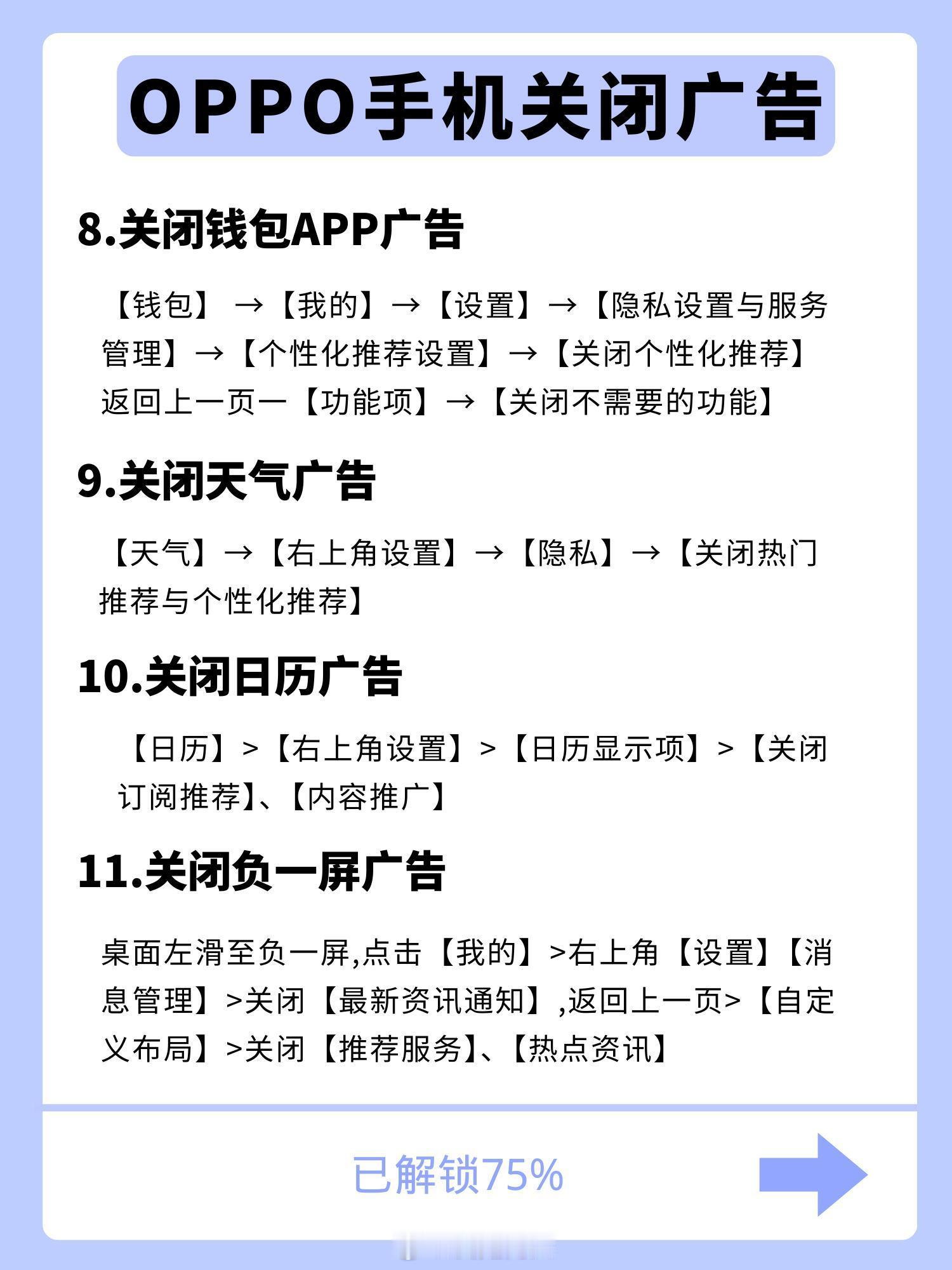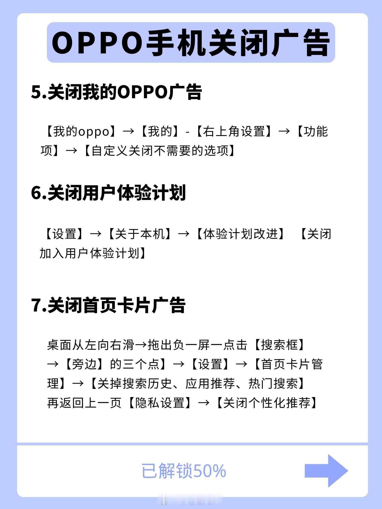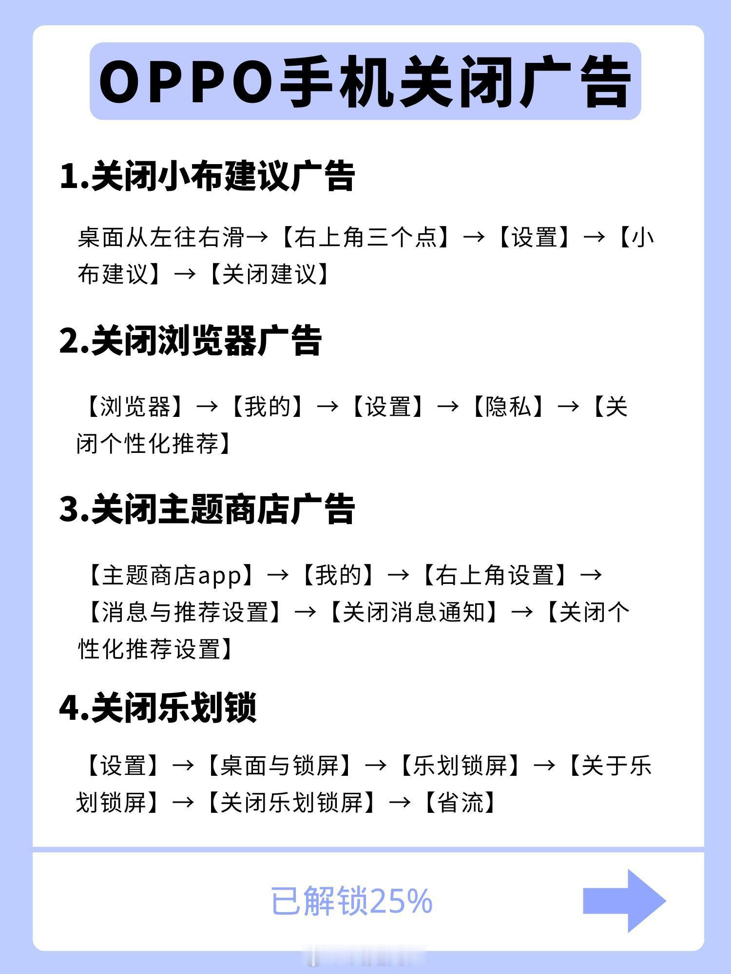 看一下这个OPPO手机关闭所有广告的教程。