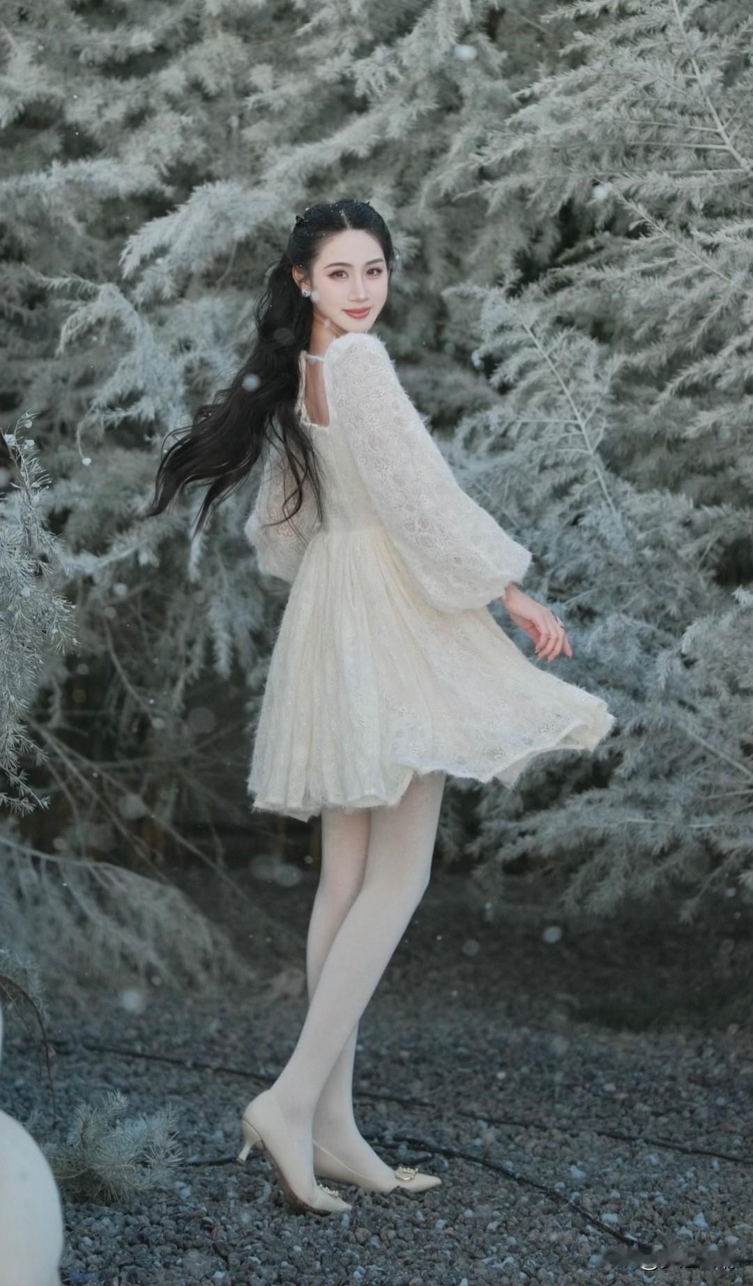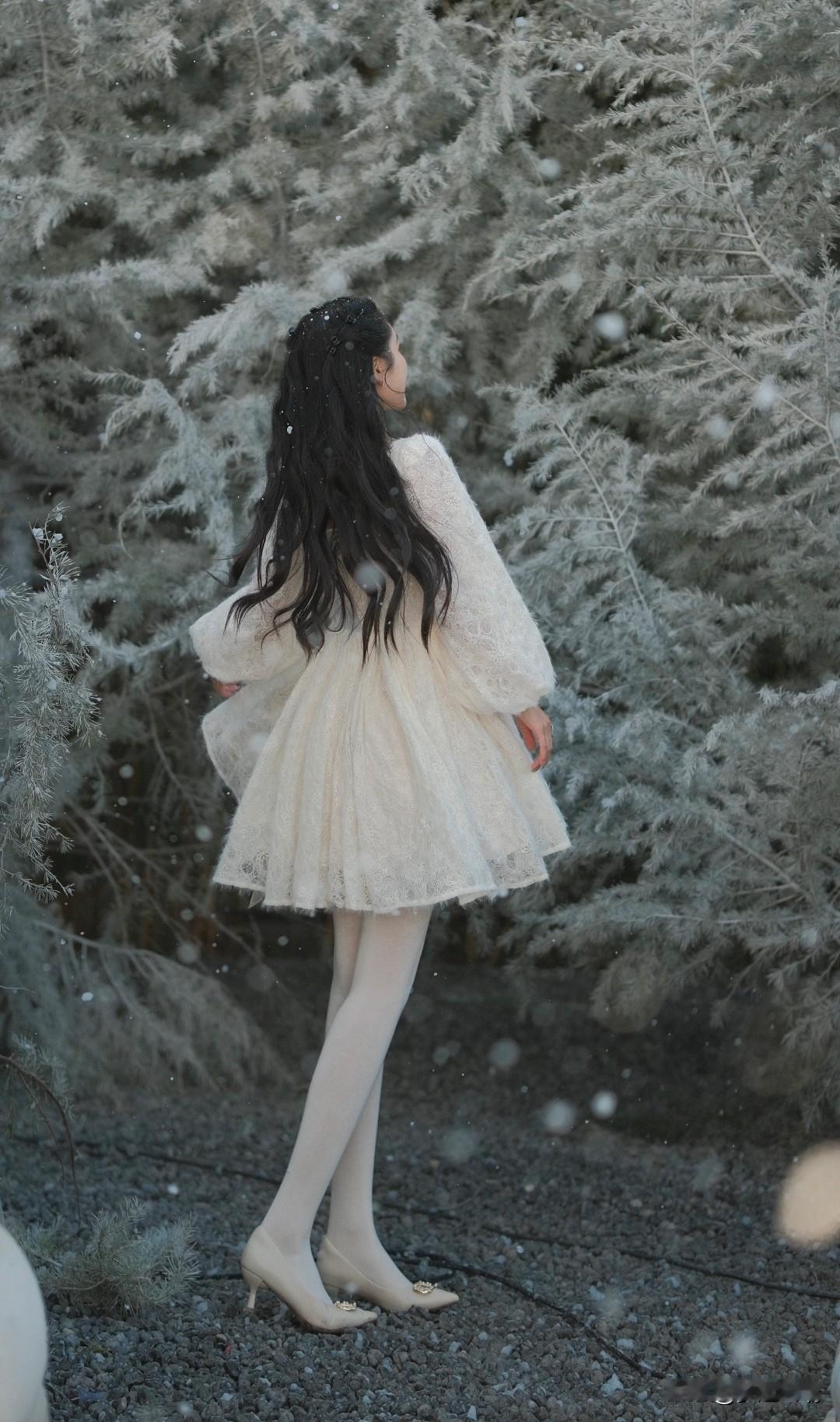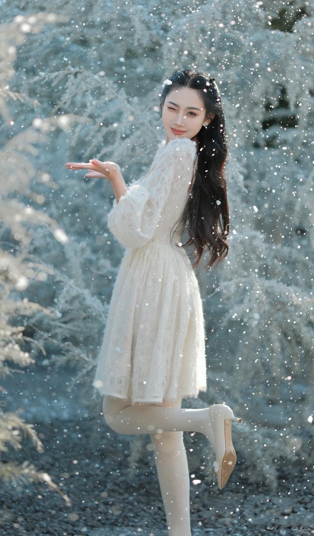 冬日仙境,雪中漫步,梦幻白裙,轻盈飘逸。