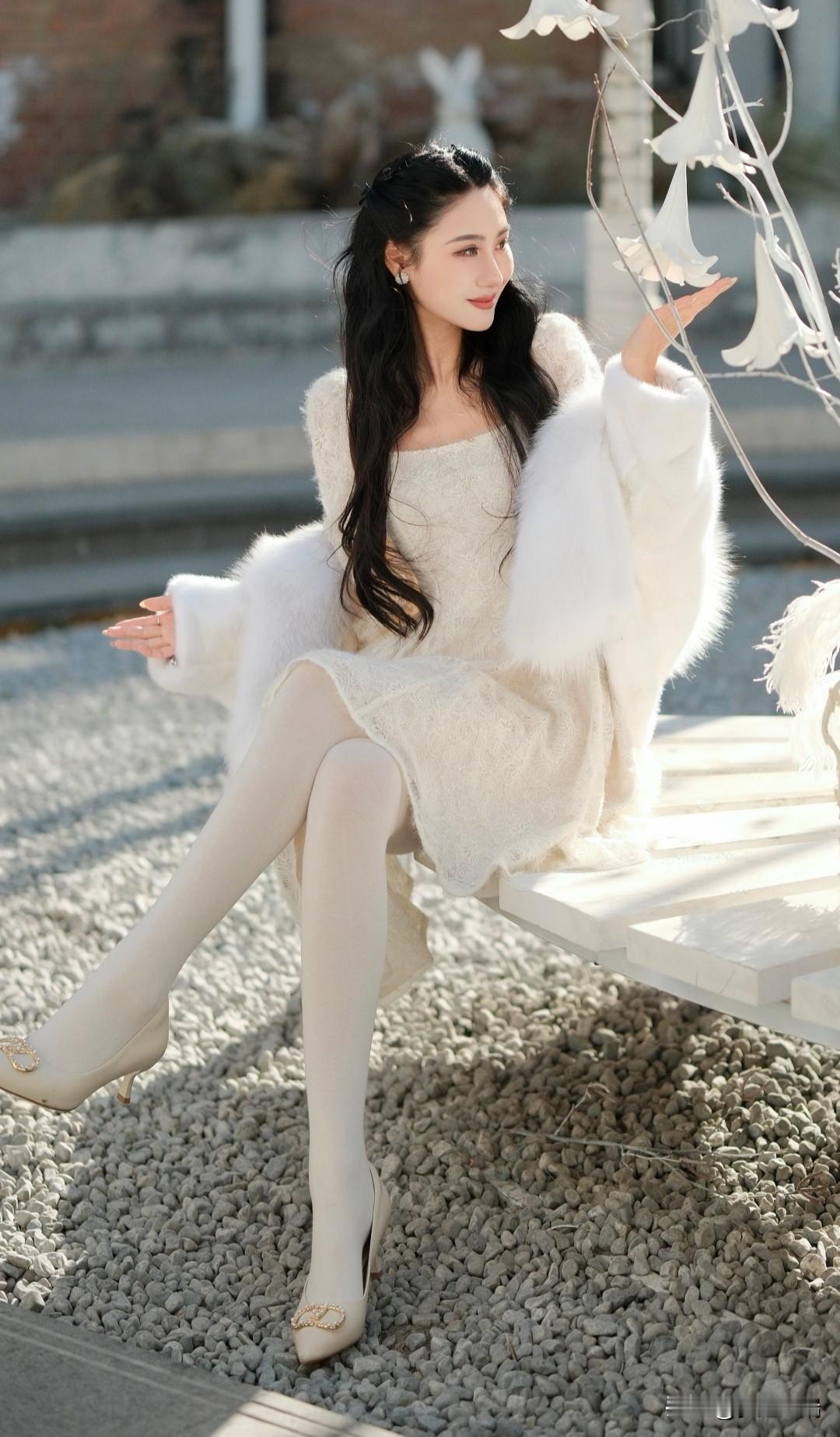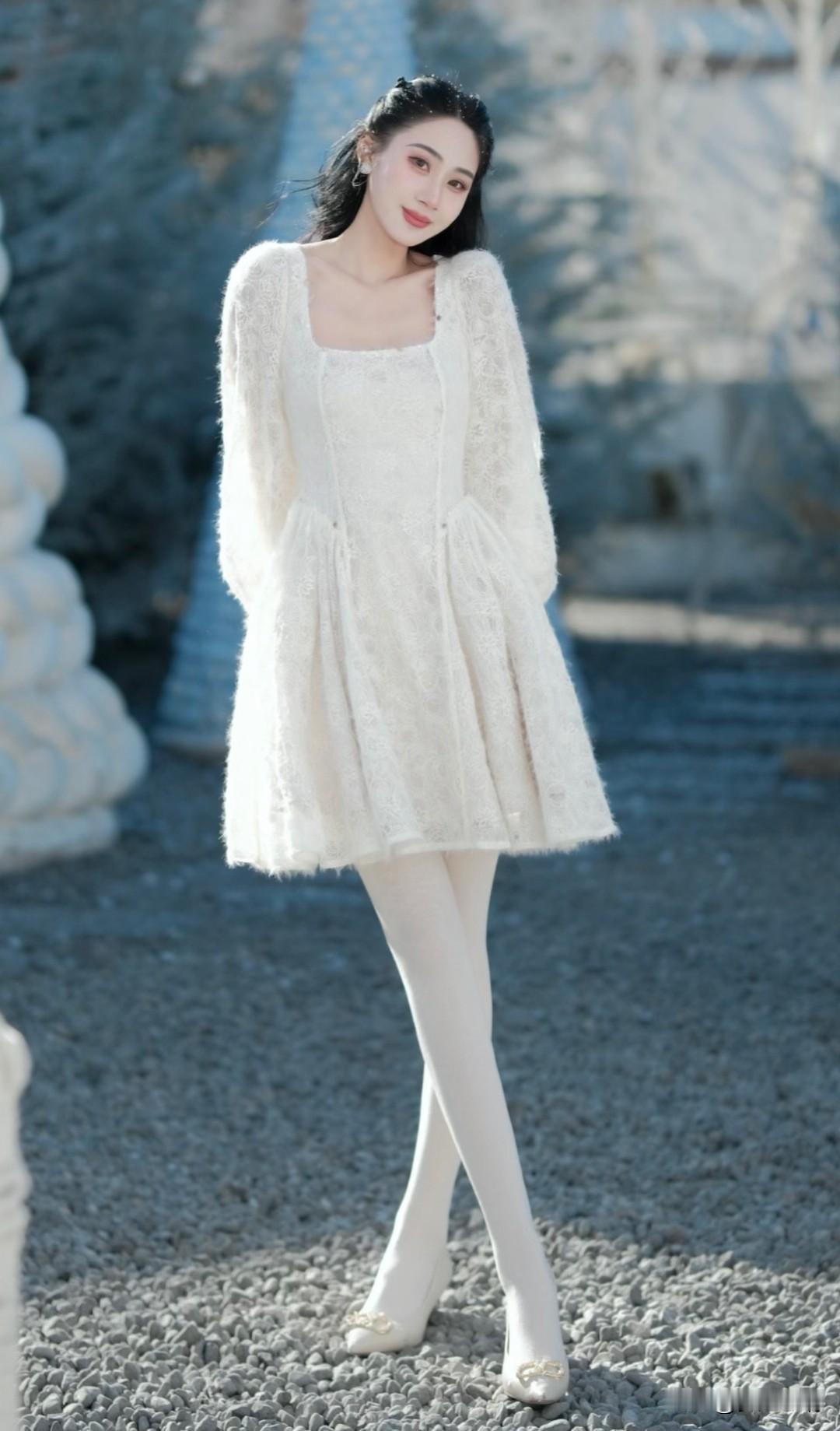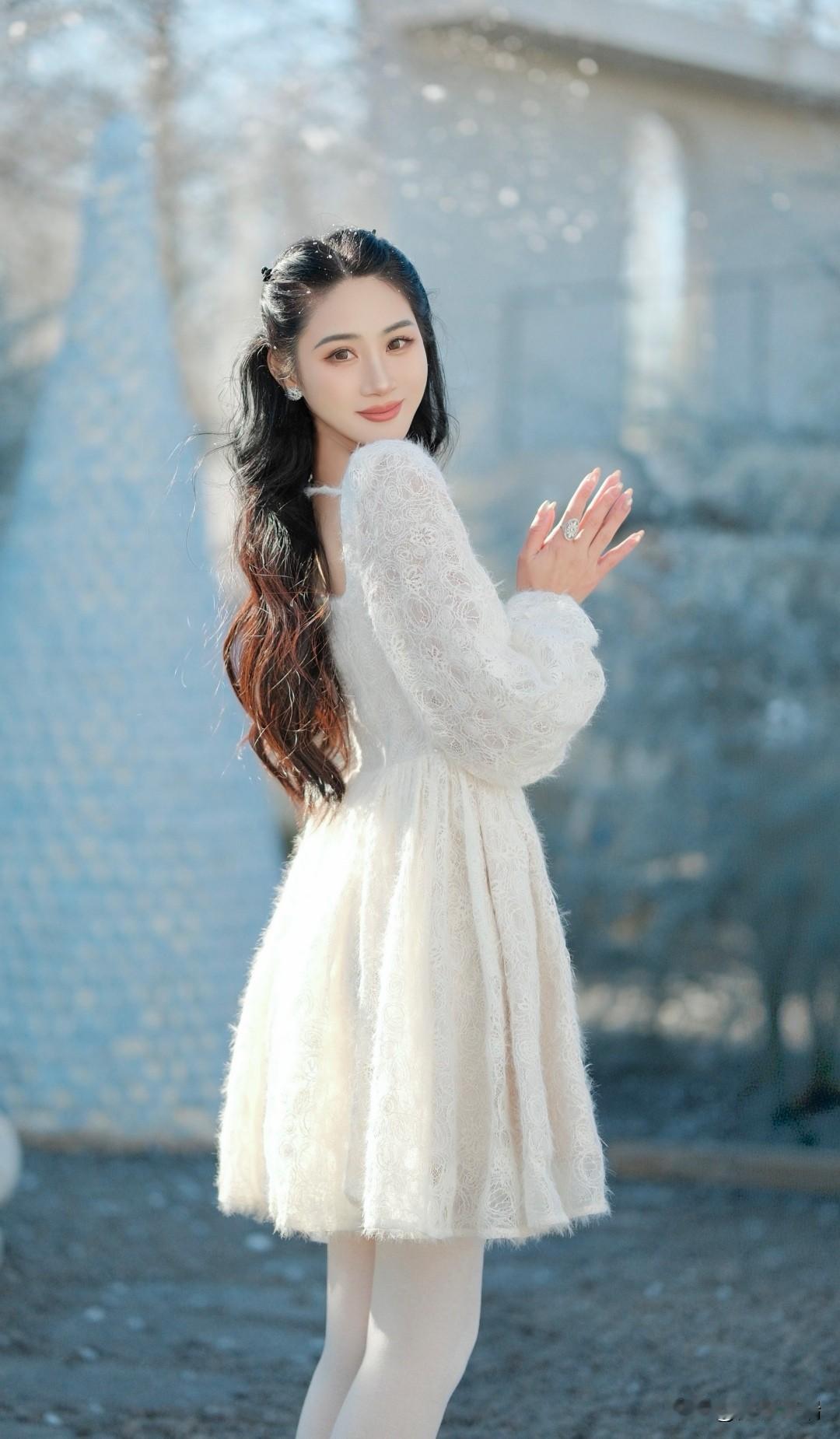 冬日仙境,雪中漫步,梦幻白裙,轻盈飘逸。