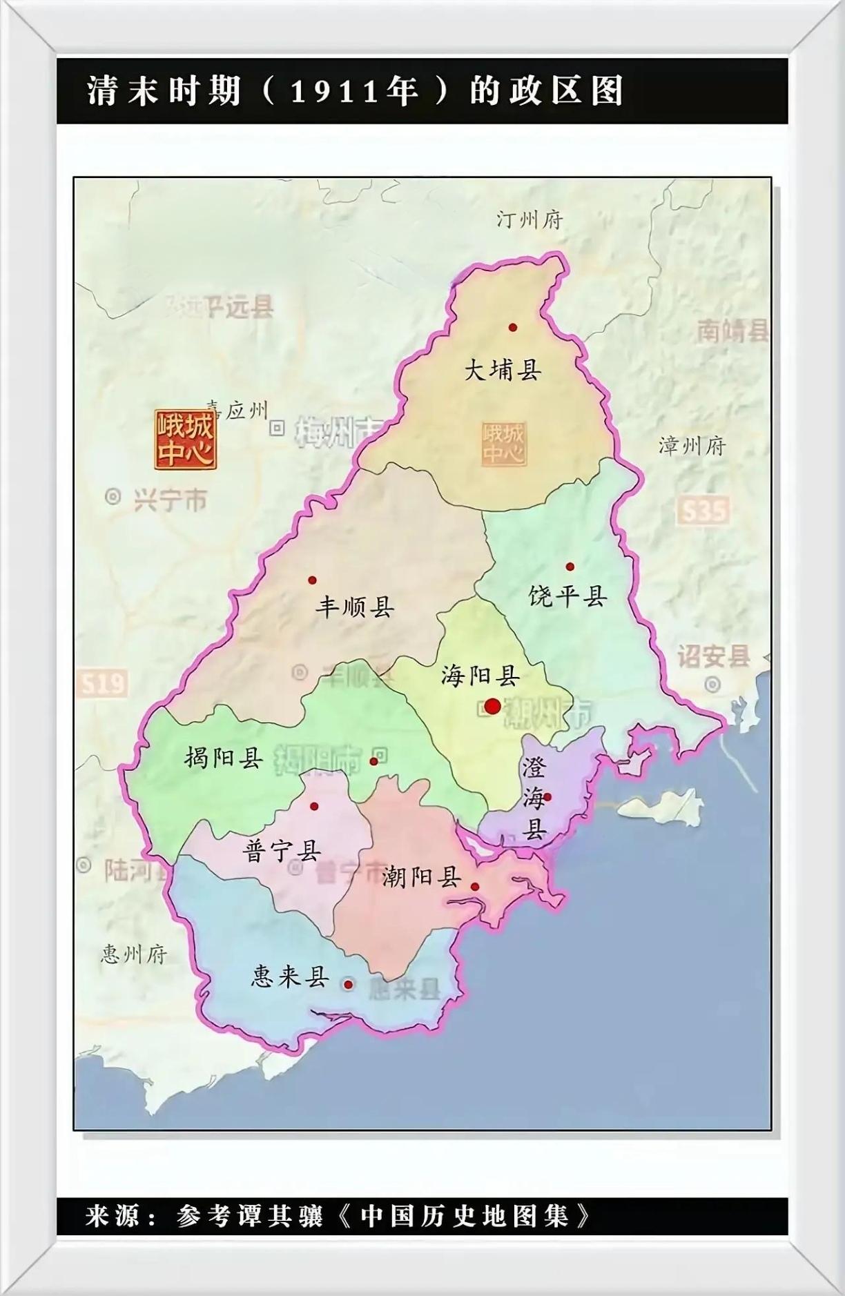 中国广东省这么大。 广东东部潮汕这么大。 东部这九个县在这个位置。 各人对号入座