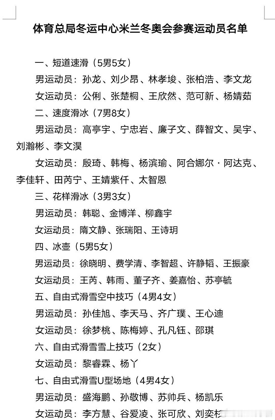 刘少林落选米兰冬奥会!1月23日上午,国家体育总局冬季运动管理中心在官网公示了参