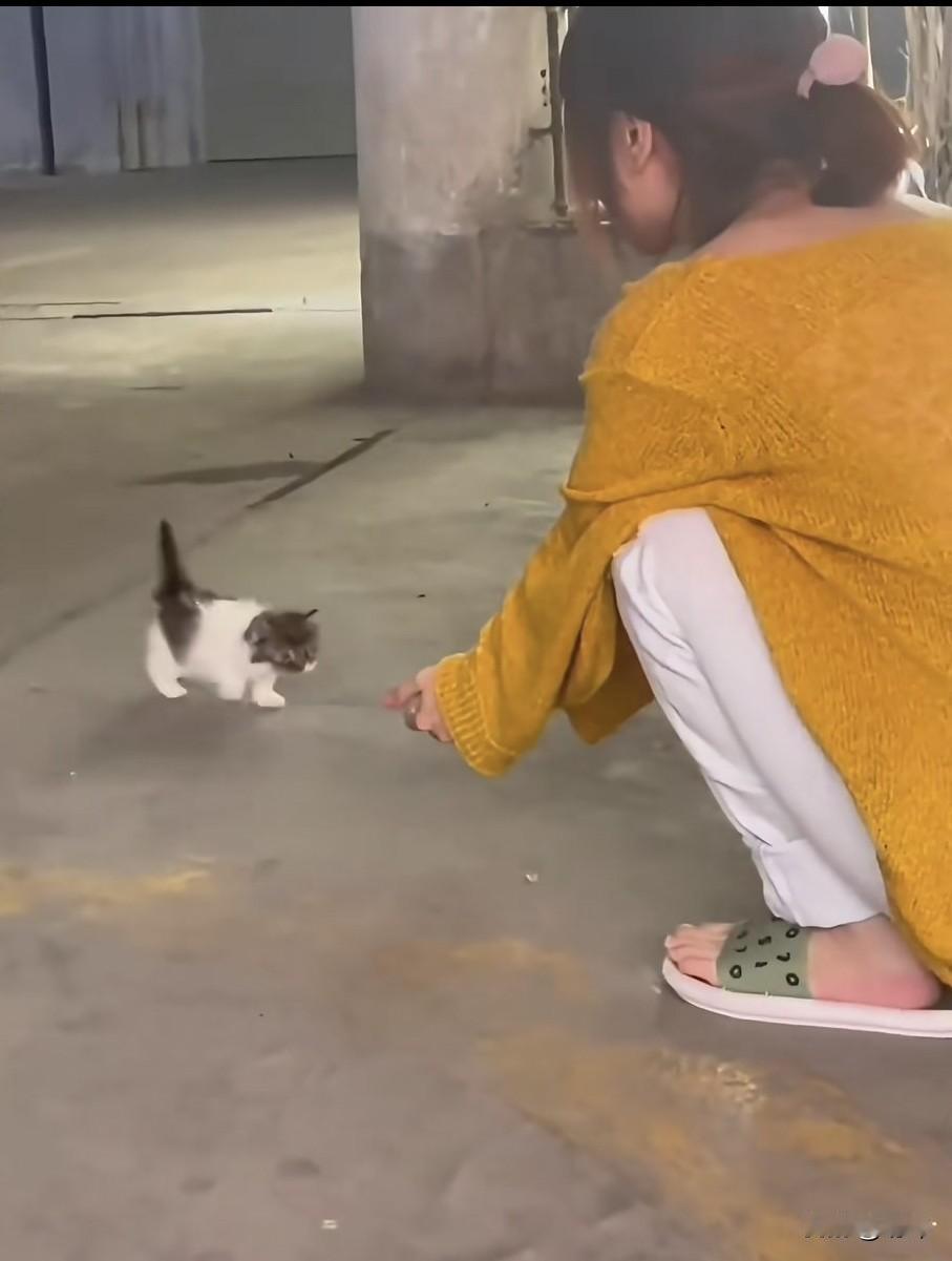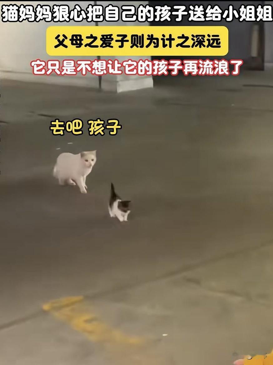 泪目了!一位小姐姐经常投喂流浪猫,而她在地下车库经常遇到一只猫妈妈,于是她经常会拿些食物投喂它,久而久之他们就熟悉了。 而这天小姐姐却看到它带着自己的孩子一起出现了在她面前,而且猫妈妈还一直把小猫朝她推去,中途小猫还回头朝妈妈走去,似乎并不想去小姐姐那里,可猫妈妈直接凶了它,它只好委屈的朝小姐姐走去。当小姐姐伸出双手抱着小猫的时候,猫妈妈转身离去了。它并不是不爱自己的孩子,只是希望孩子能有个好去处,不再流浪而已!相信在小姐姐的照顾下,小猫也会越来越好的。