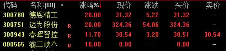 大家快看:德恩精工--迈为股份--春晖智控--渝三峡A!都是满满的大-肉!跟着老