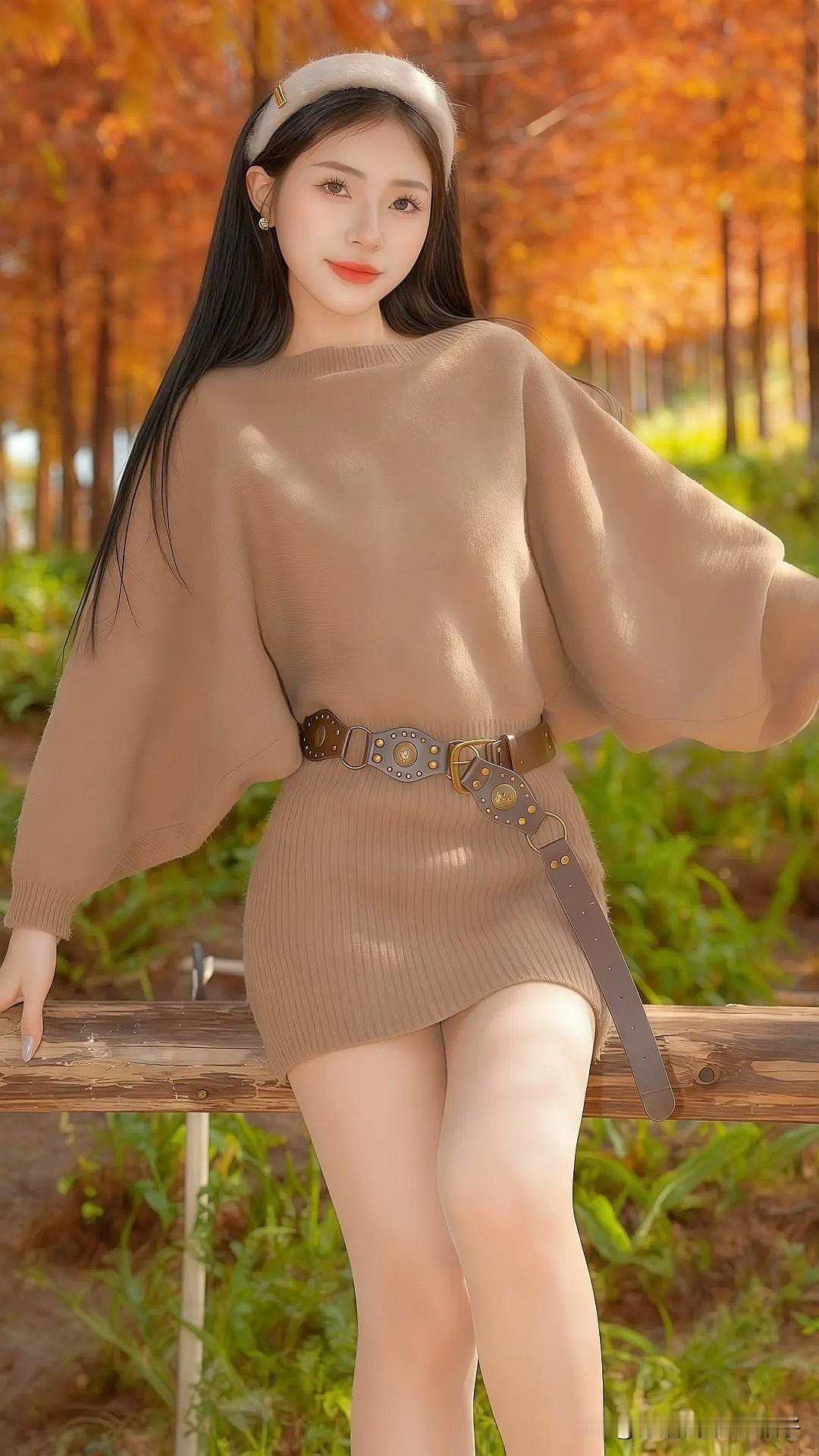 秋日暖阳下,甜美少女漫步在枫叶林中,温柔笑容如暖阳般迷人。