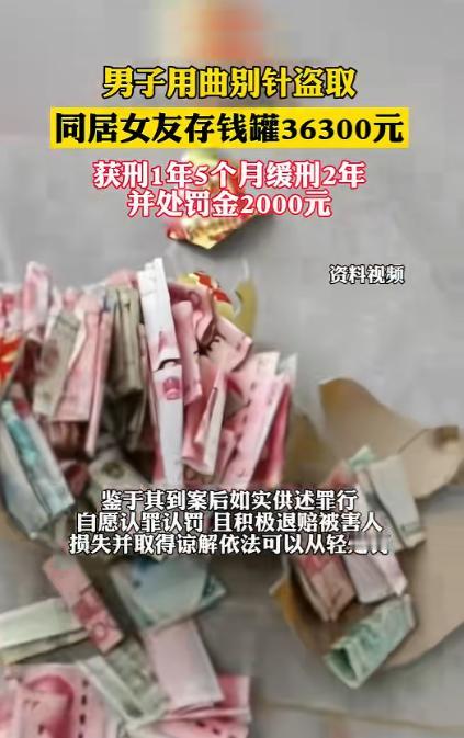 太寒心!新疆乌鲁木齐,一名男子与女友同居期间,多次趁女友不在家,用曲别针从大号存钱罐里抽走百元钞票,累计拿走36300元,钱全被他个人挥霍,女友察觉现金不对劲后报警,事情在小区里传开。 新疆,在乌鲁木齐一起同居的艾某和女友,平日里一起搭伙过日子,女友是个格外会精打细算的人,对生活有自己的小规划。 发了工资之后,先扣掉两人日常买菜、交水电费、买生活用品的开销,剩下的百元现金,她从来不会随手花掉,而是专门攒了起来。 为了能好好存钱,她特意买了一个大号的陶瓷存钱罐,这罐子是典型的 “只进不出” 款式,开口只有手指粗细,想把钱放进去,得把百元钞卷成细卷才能塞进去,而想从里面拿钱,常规情况下要么砸开罐子,要么就没有别的办法。 女友把这个存钱罐摆在了客厅电视柜最显眼的位置,每天攒一点,看着罐子慢慢变沉,心里也觉得踏实,想着一点点存起来,留着以后办点正经事。 2024 年 10 月的一天,女友一早出门上班,还顺路要去菜市场买些菜和水果,家里就只剩艾某一个人。 他闲着没事在客厅晃悠,目光一下就落在了电视柜上的存钱罐上,心里突然冒出来一个念头。 他知道罐子里全是女友一点点攒下的百元钞票,也清楚这存钱罐的口小,根本没法直接把钱拿出来,正琢磨着,他的目光扫到了桌上办公用的曲别针,随手就拿了一个,捏在手里掰直了,细铁丝一样的曲别针,刚好能伸进存钱罐的小口。 他抱着试试的心态,小心翼翼把曲别针伸进去,慢慢在罐子里扒拉,没想到真的一下勾住了一张百元钞的边缘,他屏住呼吸,一点点把钱往外抽,就这样,第一张百元钞被他顺利抽了出来。 第一次得手,艾某心里慌慌的,赶紧把钱揣进兜里藏好,又把曲别针恢复原样放回原位,还擦了擦存钱罐的表面,确认没留下任何痕迹,这才松了口气,女友回家后,果然丝毫没有察觉。 这一次的顺利,让艾某心里的那点慌张慢慢消失了,胆子也一点点大了起来。从那之后,只要女友出门,不管是上班、和朋友逛街,还是走亲戚串门,只要家里没人,艾某就会立刻走到电视柜旁,拿出曲别针掰直,重复着勾钱的动作。 从 2024 年 10 月到 2025 年 2 月,这四个月的时间里,他就靠着这个小小的曲别针,一次次从女友的存钱罐里抽走百元钞票,而偷来的这些钱,全被他用来个人挥霍。 要么约着朋友去小区附近的饭馆吃饭喝酒,要么去网吧玩游戏充钱买装备,要么随手买些用不上的小物件,花起来毫无节制,从来没想过这些钱是女友省吃俭用攒下的。 时间走到 2025 年 2 月,快到过年了,女友想着把存钱罐里的钱取出来,凑个整数存进银行,也能好好规划下新年的开销。 她把存钱罐抱在手里摇了摇,却总觉得里面的钱比自己记的数少了太多。 平日里,她都会在手机上简单记一下自己往罐子里塞了多少钱,心里大概有个数,可现在摇起来的重量,明显和自己的记录对不上。 她又仔细检查了存钱罐,罐体完好无损,没有任何被砸过、撬过的痕迹,开口也还是原来的样子,一点都没被改动过。 她心里犯了嘀咕,开始一点点回忆,最近家里从来没来过外人,只有她和艾某两个人,而艾某最近的举动也变得格外反常。 他突然出手阔绰了不少,经常莫名其妙就出门和朋友聚会,还买了不少新的电子产品,这些花销,根本不是他的工资能支撑的。 女友越想越不对劲,找了个小工具,小心翼翼把存钱罐里的钱慢慢倒出来,一张一张数了一遍,数完的那一刻,她才发现罐子里的钱少了一大截,她拿着手机里的记账记录和罐子里的钱反复核对,最终确认,一共少了 36300 元。 思来想去,女友还是选择了报警,她想弄清楚,自己的钱到底去哪了。民警接到报警后,很快就赶到了小区,先是向女友详细了解了情况,又查看了存钱罐和她的记账记录,随后依法传唤了艾某进行询问。 一开始,艾某还百般辩解,说自己从来没碰过女友的存钱罐,也不知道罐子里的钱少了。 可民警顺着线索一步步调查,调取了小区的公共监控,画面里清晰地拍到艾某多次拿着现金出门,这些消费的时间,都和女友出门的时间相吻合。 民警又查了艾某的消费记录,一笔笔的开销都能和他偷钱的时间对上,在实打实的证据面前,艾某再也没法抵赖,如实交代了自己偷钱的全部经过,也承认了偷来的钱已经被自己全部挥霍一空,一分钱都没剩下。 这起案件随后被移交到了法院,法院对此案作出了一审判决,艾某因犯盗窃罪,被判处有期徒刑一年五个月,缓刑二年,同时被处罚金人民币 2000 元。 不管是情侣相处还是日常相交,信任从来都是最珍贵的东西,而伸手偷拿不属于自己的钱财,终究逃不过法律的制裁,这桩发生在乌鲁木齐的真实事儿,也终究给所有人提了个醒:别因一时的贪念,毁了自己,也凉了别人的心。 对于这件事,您有什么想说的吗?欢迎评论区留言讨论。 信源:半岛晨报2025-07-10——《男子用曲别针盗取同居女友存钱罐36300元》