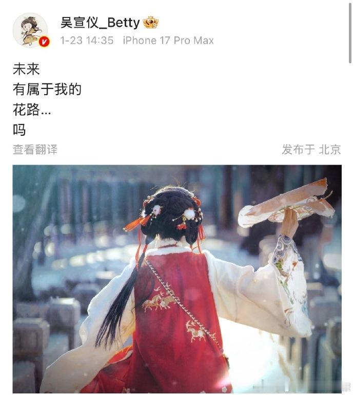 吴宣仪回应走花路文案吴宣仪说别误会吴宣仪 有属于我的花路吗吴宣仪回应走花路文案,自修图 + 剧情文字,未来必定赢得漂亮