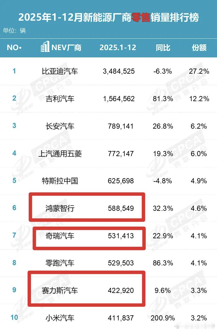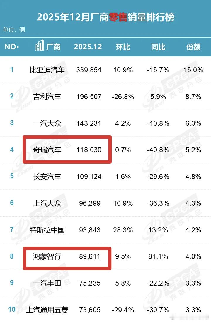 引用乘联分会;2025年12月厂商销量数据!鸿蒙智行 可以有,但不知道厂商有没有剔除?汽车销量新能源汽车大v聊车新能源汽车