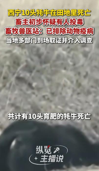 “严查到底!”近日,青海西宁,一名牧民养殖户清晨去田里查看时,竟发现自家放养的10头壮硕牦牛竟集体倒在田地里没了气息,口鼻还残留着异常分泌物。畜主心疼得直掉眼泪,怀疑有人恶意投毒,于是赶紧报警!网友:得罪谁了? 1月18日,青海西宁的一位牧民养殖户早早起身,朝着自家牦牛放养的田地走去。这片田地挨着草场,是他平日里特意留给牦牛觅食的地方。 想着冬日里草料不算丰盛,田里的残茬能给这些壮硕的牦牛添点吃食,可谁能想到,这一趟出门,竟撞见了让他心头揪成一团的画面。 十头正处育肥期的牦牛齐刷刷倒在田地里,往日里活蹦乱跳、身型健硕的大家伙,此刻一动不动,连一点呼吸的动静都没有,仔细看过去,每头牦牛的口鼻处还残留着异样的分泌物。 看着养了许久的牦牛就这样没了,牧民蹲在田埂上,心疼得直掉眼泪,这些牦牛是他一家人的生活指望,如今一夜之间集体殒命,任谁都难以接受。 结合眼前看到的异常症状,他第一时间怀疑是有人恶意投毒,来不及多想,立刻掏出手机报了警,电话里的声音都带着止不住的颤抖。 报警电话拨通后,当地警方很快就赶到了现场,民警第一时间对现场进行了封锁,避免无关人员进入破坏线索,同时仔细查看了牦牛死亡的具体位置和现场的环境情况,随手记录下发现的各类细节。 消息也很快传到了当地畜牧兽医站,工作人员接到通知后,以最快的速度携带专业的检测设备和工具赶赴现场,一场针对牦牛集体死亡原因的调查随即展开。 兽医站的工作人员抵达后,立刻投入到工作中,围绕着十头死亡牦牛进行了全面的检查,从体表症状到身体内部,都做了细致的排查。 为了找到最直接的死亡原因,工作人员对部分牦牛进行了解剖,重点提取了胃内的残渣样本,这些样本是判断死亡原因的关键,能直观反映出牦牛生前摄入的食物是否存在问题。 提取完样本后,兽医站的工作人员将样本带回实验室,按照青海省动物疫病监测的相关标准和流程展开检测,重点排查了结核病、牛传染性胸膜肺炎等当地畜牧业重点监测的动物疫病。 这些疫病都是青海牧区在养殖过程中重点防范的,检测过程中,工作人员对每一项指标都做了反复核对,确保检测结果的准确性。 经过一系列严谨细致的检测分析,兽医站给出了明确的检测结果,确定此次集体死亡的十头牦牛,并非由动物疫病导致,这一结果也让投毒的嫌疑变得更大。 随后,兽医站将现场提取的所有相关样本,全部移交给了公安部门,为后续的毒物检测和调查取证提供最直接的依据。 牦牛集体死亡的消息传开后,当地农业农村局也迅速介入,和公安部门、畜牧兽医站形成联动,多部门工作人员齐聚现场,开展联合取证和调查工作。 农业农村局的工作人员结合当地牦牛养殖的实际情况,对现场的草料、土壤等进行了取样检测,排查周边养殖环境是否存在异常。 警方则围绕着事发地周边展开了全面的走访排查,先是询问了养殖户平日里的养殖情况和社交往来,又挨家挨户走访了周边的村民和其他养殖户。 了解事发前后是否看到过可疑人员或可疑车辆出现在田地附近,同时对周边的草场、道路等区域进行了细致的现场勘查,不放过任何一个细微的线索。 随着多部门联合调查的推进,这起西宁湟中区牦牛集体死亡的事件也在网络上传播开来,网友们看到消息后,纷纷在评论区留言关注事件进展,有人心疼牧民的遭遇,感慨养殖的不易。 也有人发出疑问,好好的十头牦牛,怎么会突然集体死亡,不少人接连追问 “这是得罪谁了”,还有网友呼吁相关部门一定要严查到底,尽快找到事件的真相,给牧民一个交代。 截至目前,针对这起事件的调查工作仍在紧张有序地推进中,公安部门已经开展了多轮的现场勘查和走访排查,对畜牧兽医站移交的样本展开了进一步的毒物检测,相关的检测结果还在等待中。 事发地周边的排查工作也在持续进行,工作人员对周边的田地、草场以及过往的道路都做了反复的查看,力求从蛛丝马迹中找到线索。 当地相关部门表示,会持续跟进事件的调查进展,一旦有新的检测结果和调查情况,会第一时间向社会公布,切实维护牧民的合法养殖权益。 对于青海的牧民来说,牦牛是他们生活中不可或缺的一部分,而西宁的牦牛产业发展,更是关乎当地乡村振兴和畜牧业的高质量发展。 这起十头牦牛集体死亡的事件,也让当地更加重视养殖环境的安全和畜牧产业的保护,相关部门也会以此次事件为契机,进一步加强牧区的日常巡查和监管,为当地的牦牛养殖保驾护航。 对于这件事,您有什么想说的吗?欢迎评论区留言讨论。 信源:纵览新闻2026-01-20——《西宁10头牦牛在田地里死亡,畜牧兽医站:畜主怀疑有人投毒 已排除动物疫病。》