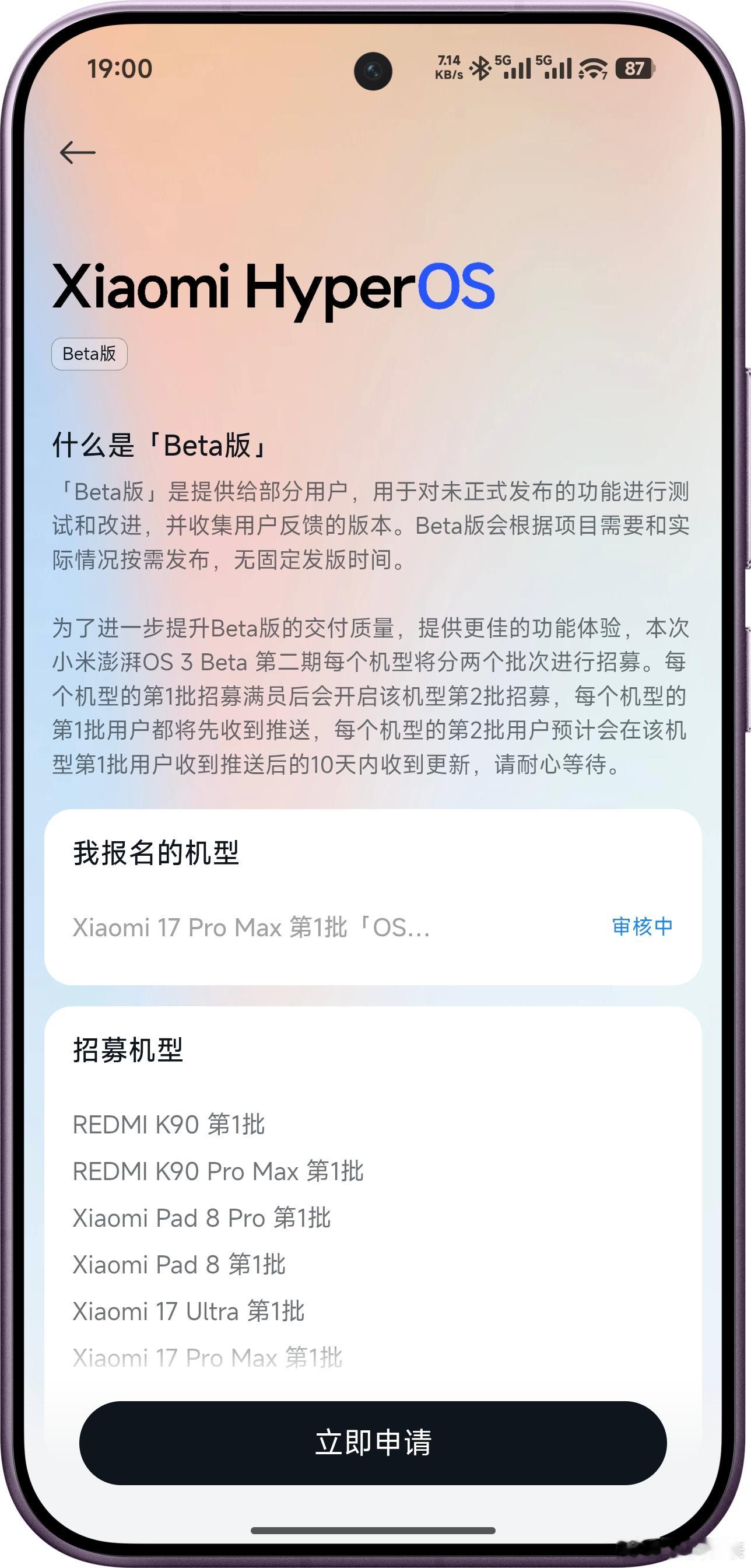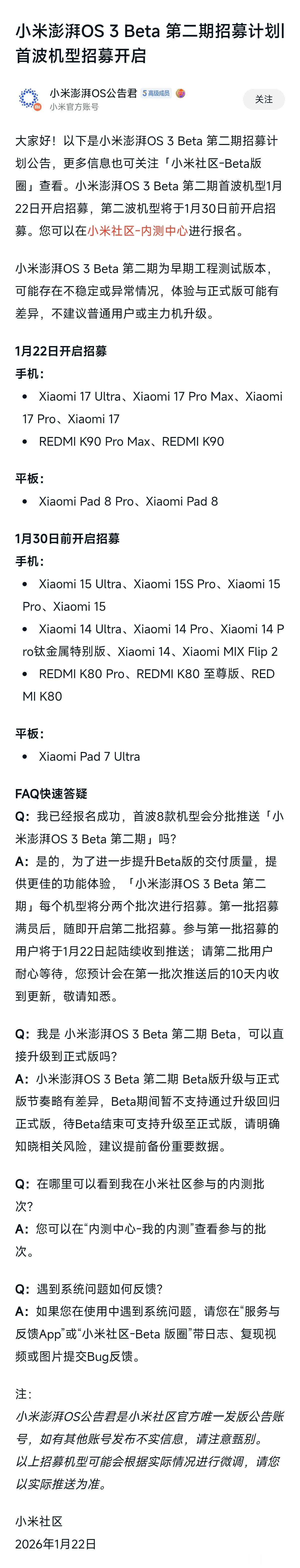 突然发现,小米澎湃OS3Beta第二期昨天就开始招募了,之前第一期结束后就一直没申请上,今早看见就赶紧安排了,到这会已经通过且收到推送了!美滋滋,叫我看看又多了哪些好玩的~