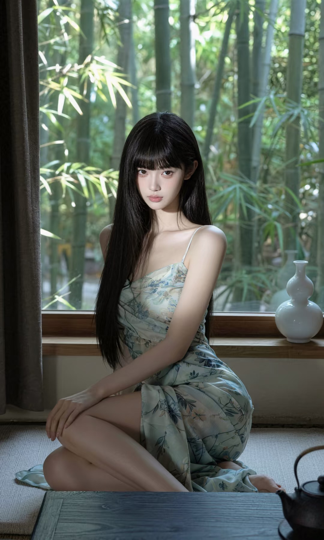 东亚美少女,唯美高清全身照,冷白皮,美艳无双,风情万种,棕色卷发做慵懒...