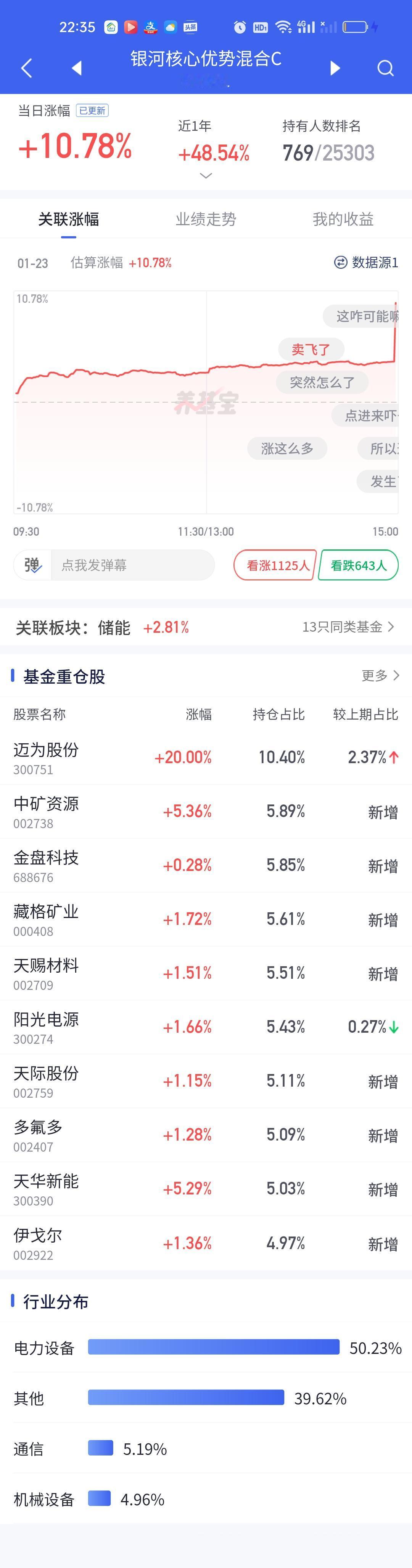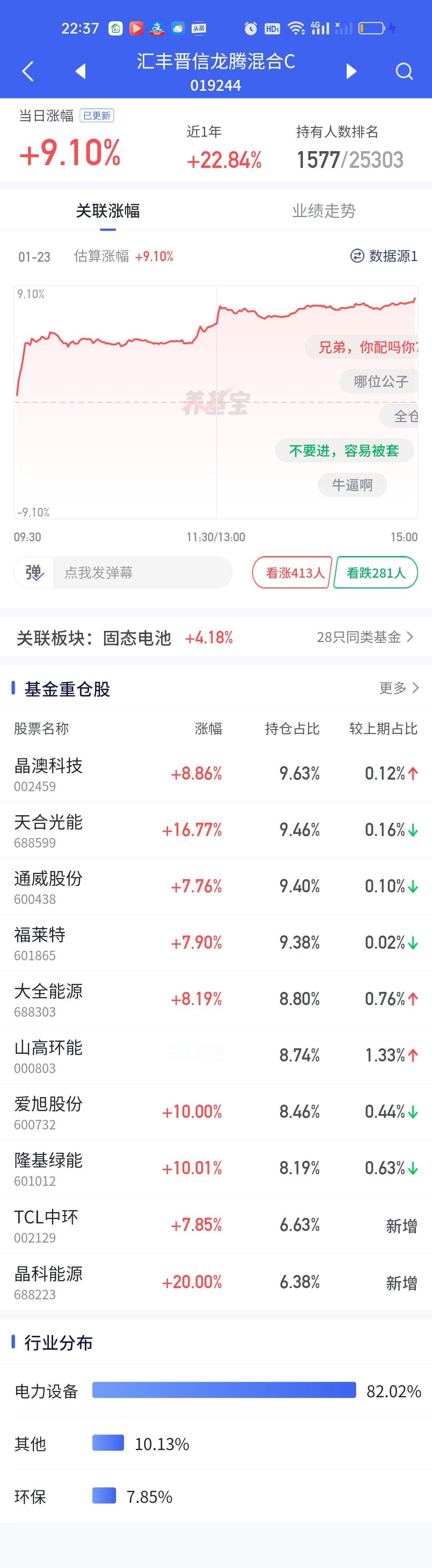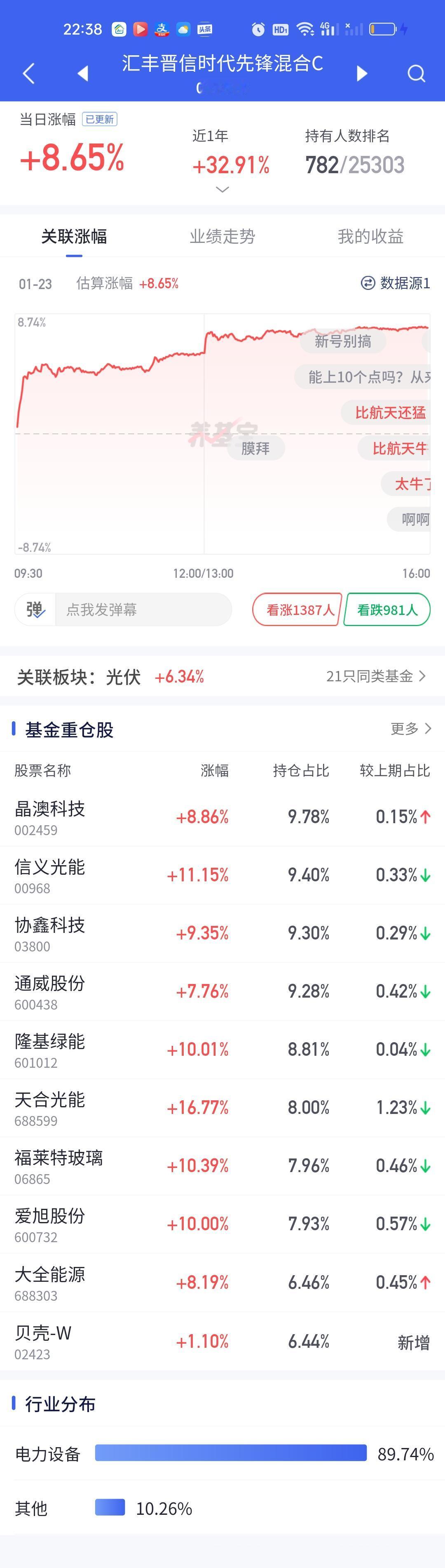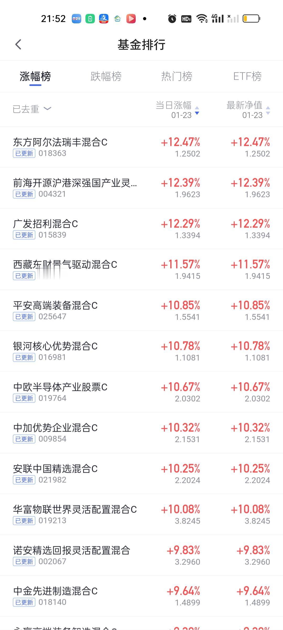 今日净值榜排名前列的基金再次仔细研究了一番。涨10.78%的银河核心优势肯定不是来自商航板块,今天算超级高开了大概率调到光伏板块了。汇丰晋信龙腾和汇丰晋信时代先锋明确都是光伏的基。今天涨幅也都在9%左右。